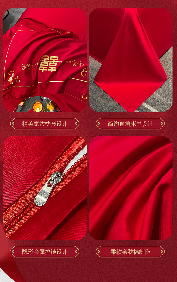 (总)欧乐蒂 2025新款亲肤棉刺绣花边婚庆四件套-浪漫花季,浪漫花季-红,浪漫花季-金