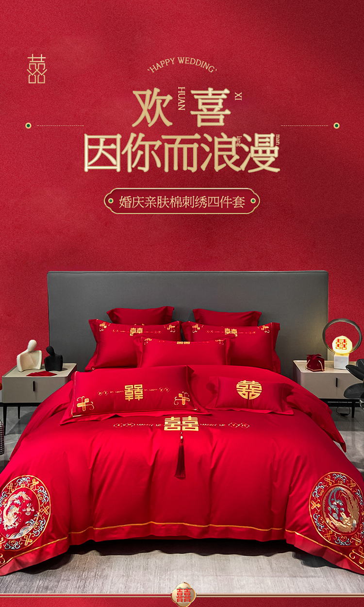 (总)欧乐蒂 2025新款全棉刺绣婚庆四件套,佳偶天成,龙凤和美,龙姿凤彩,玫瑰恋人,倾城之恋,双囍临门,甜蜜爱情,囍结良缘