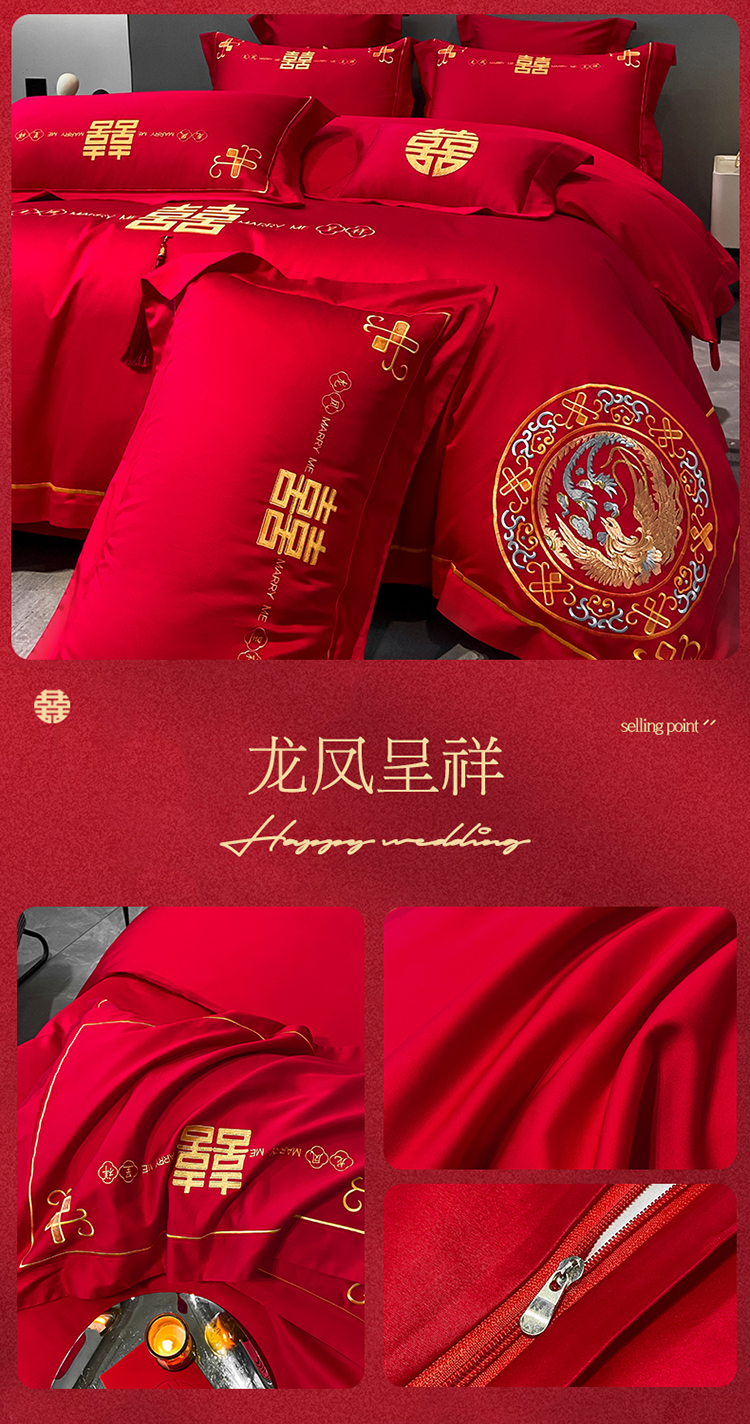 (总)欧乐蒂 2025新款设计师原创亲肤棉婚庆四件套,云喜东方,双喜临门,喜乐,喜事连连,爱恋,玫瑰爱恋,花开富贵,金枝玉叶,锦绣佳缘,龙姿风采