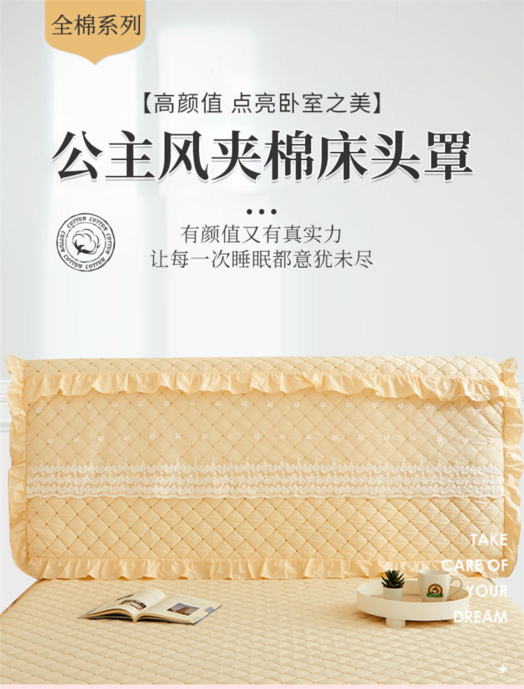 商品名称:十个点 2024新款全棉公主夹棉床头罩 米黄色
