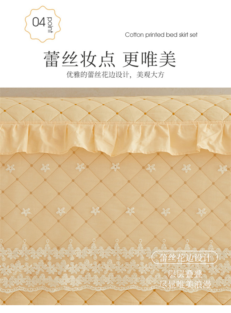 (总)十个点家纺 2025新款千鸟格磨毛绗缝夹棉纯色花边床裙三件套,经典白色,经典兰色,经典浅灰,经典浅驼,经典深灰,经典玉粉