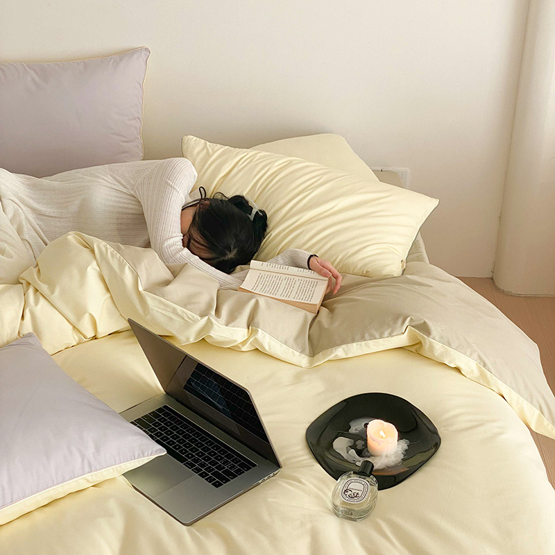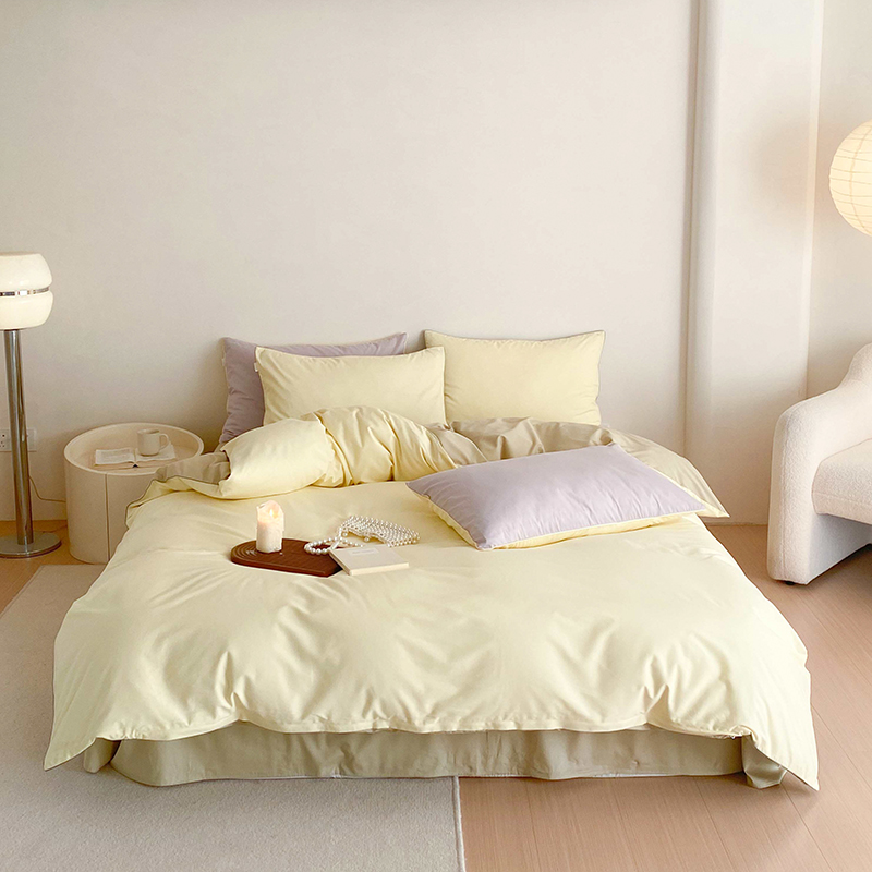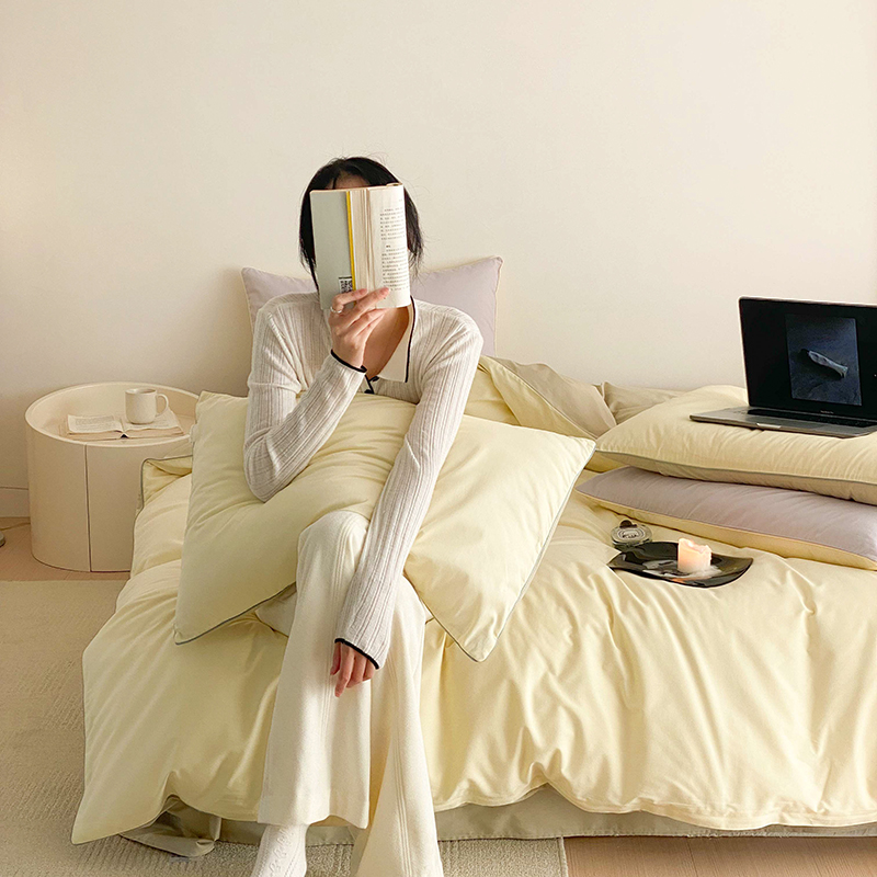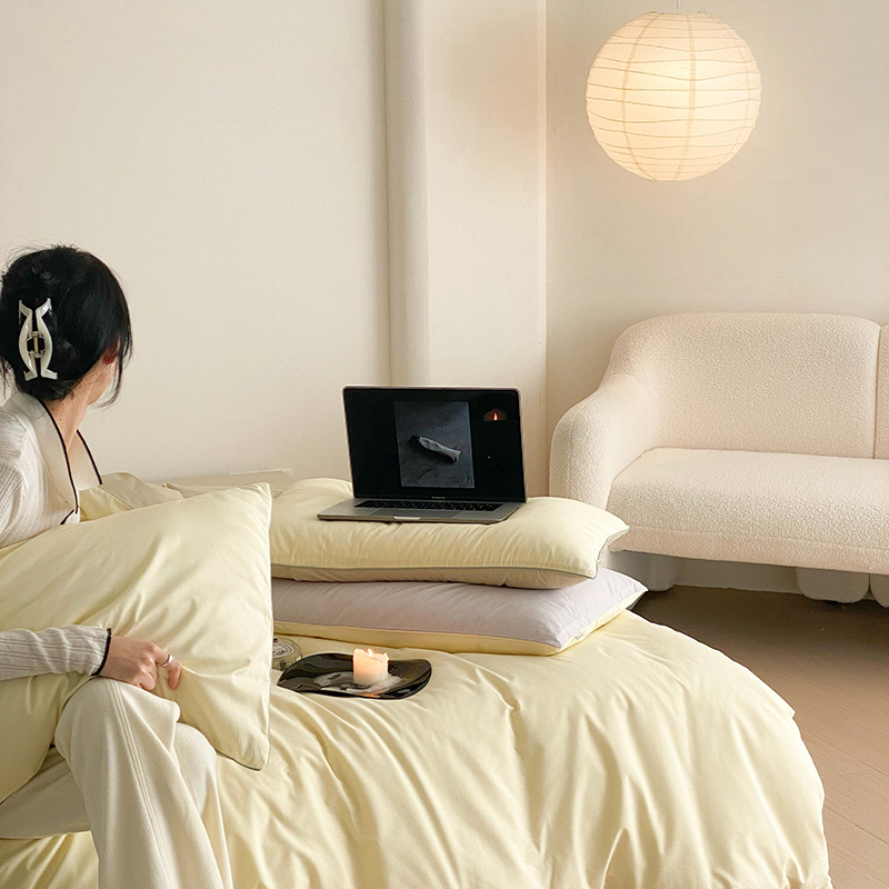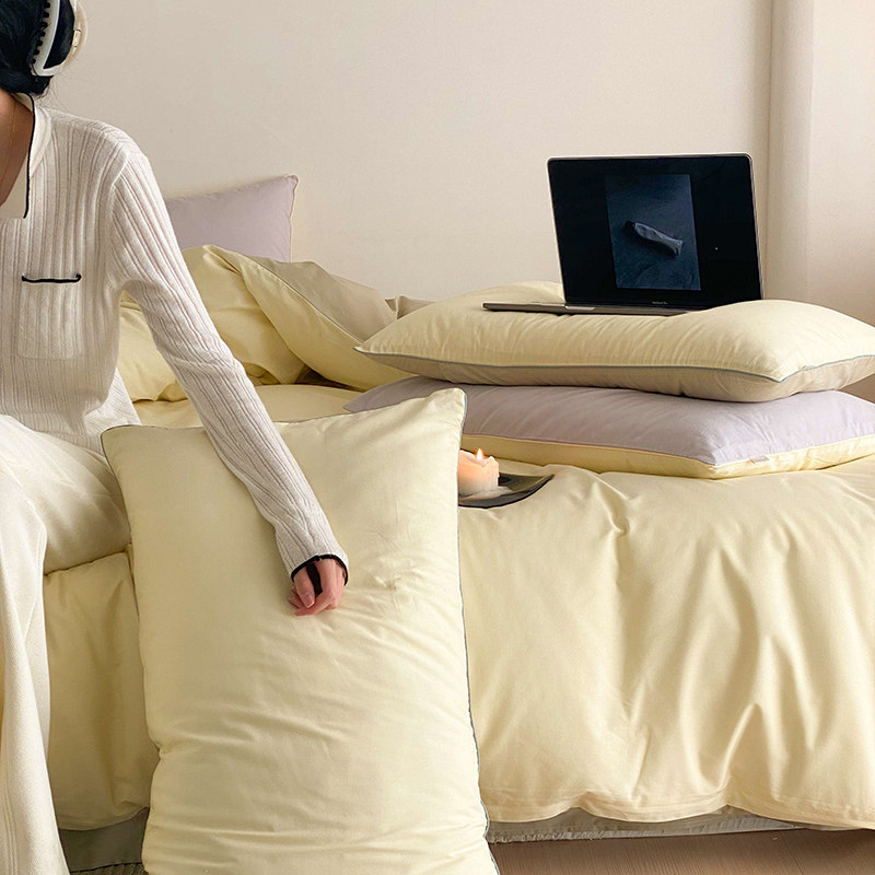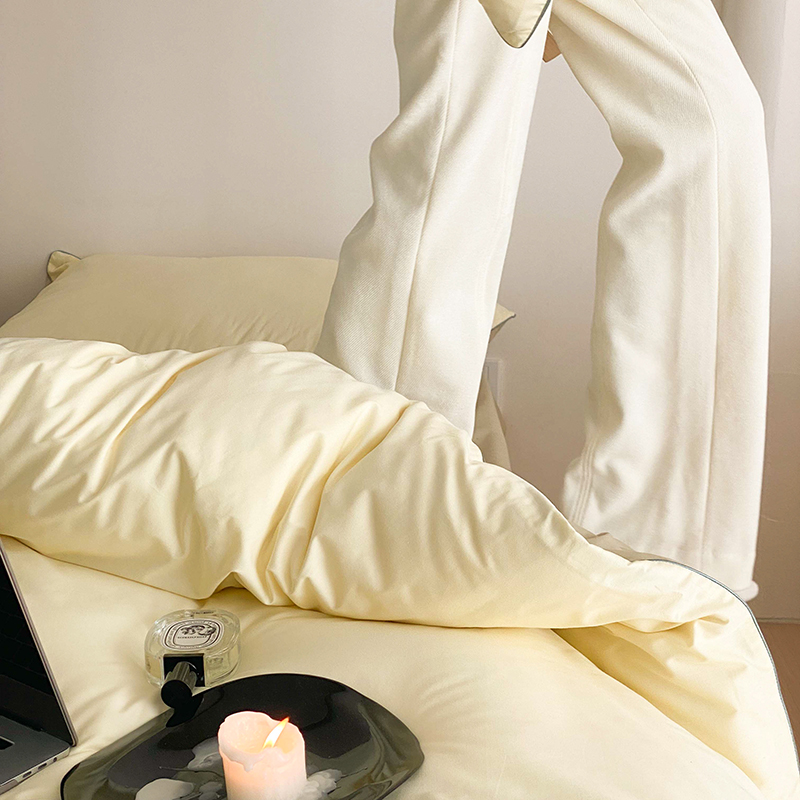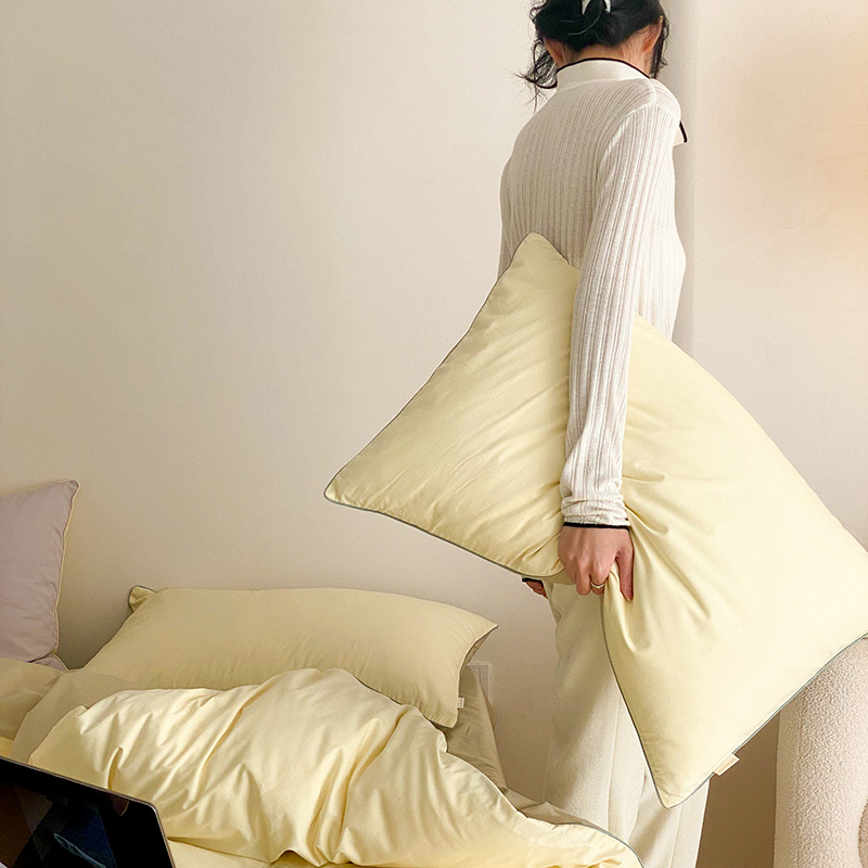 当前位置: 91家纺网 > 商品网购 > 床品套件 > 四件套 > 全棉普通四件套 > 时年 2023新款40支全棉水洗棉嵌绳款四件套--拍法二 香草黄