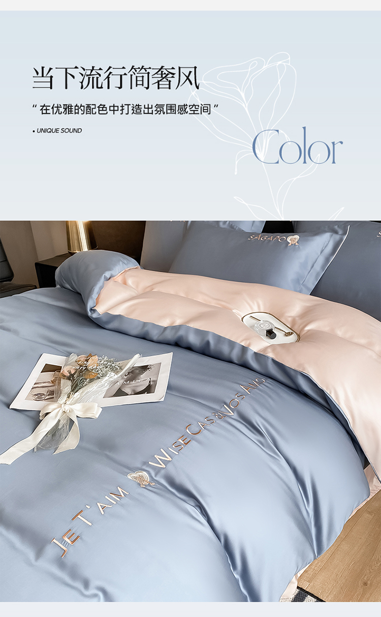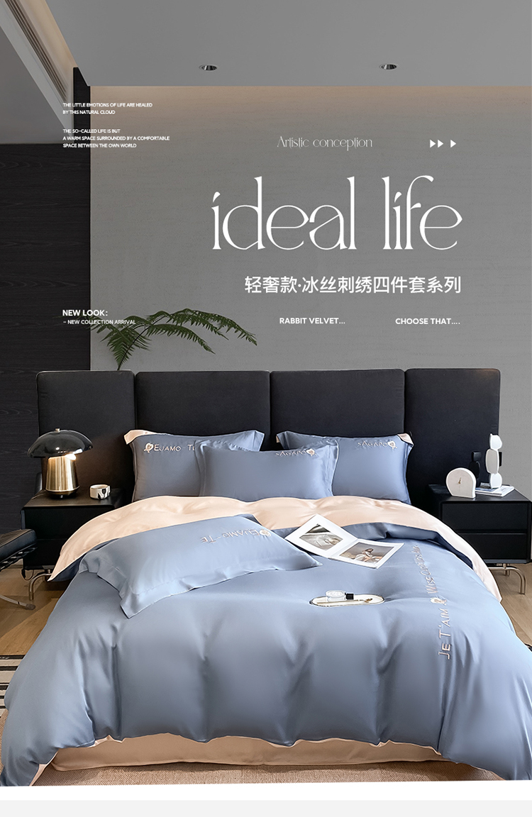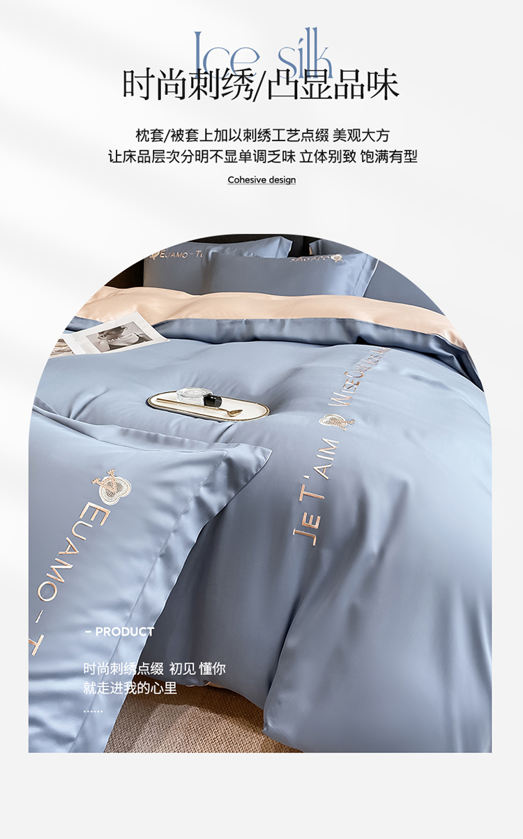 (总)金麦家纺 2025新款冰丝绣花四件套-心愿系列,心愿粉色,心愿燕麦奶,心愿天空蓝,心愿淡雅绿,心愿浅灰
