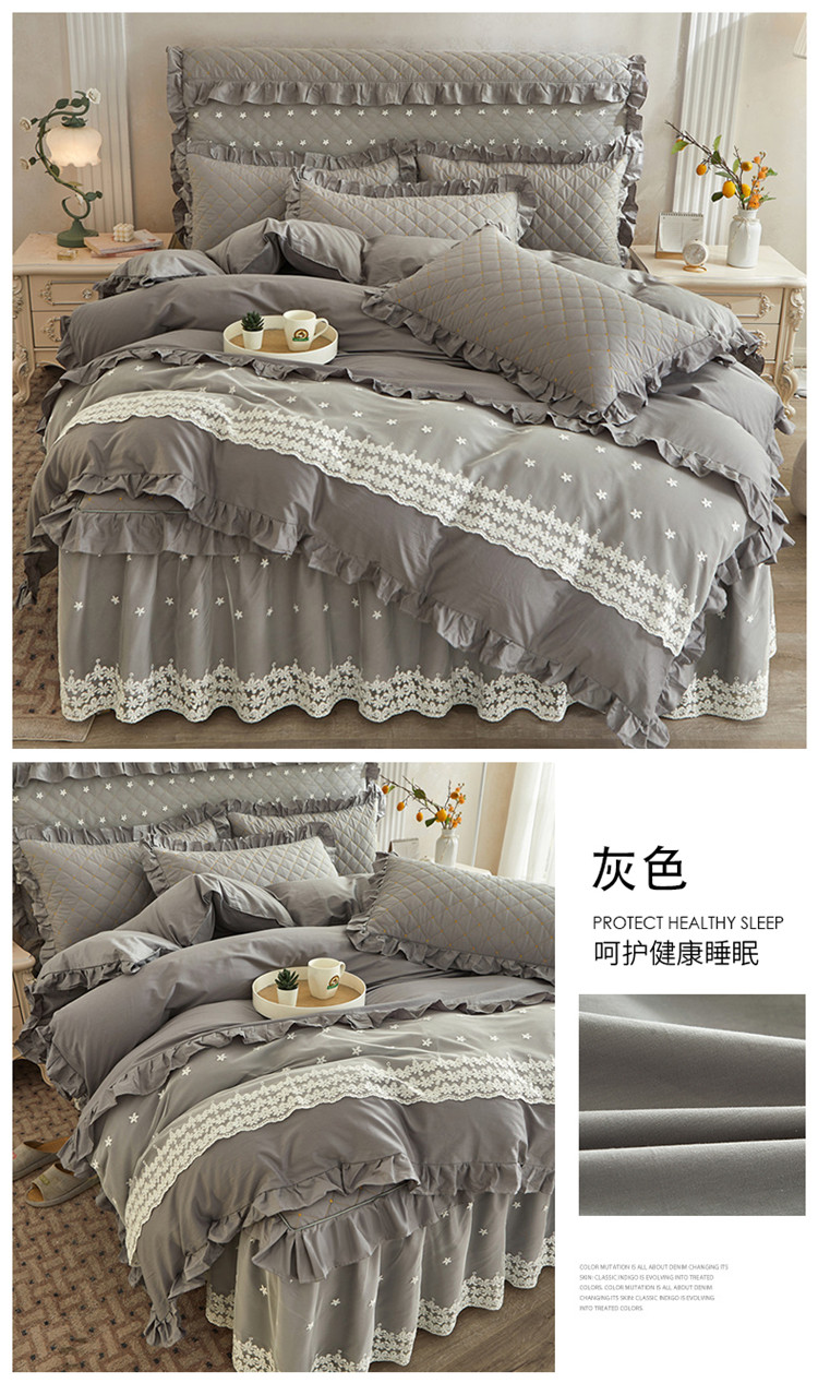 (总)十个点 2024新款全棉公主夹棉床裙四件套