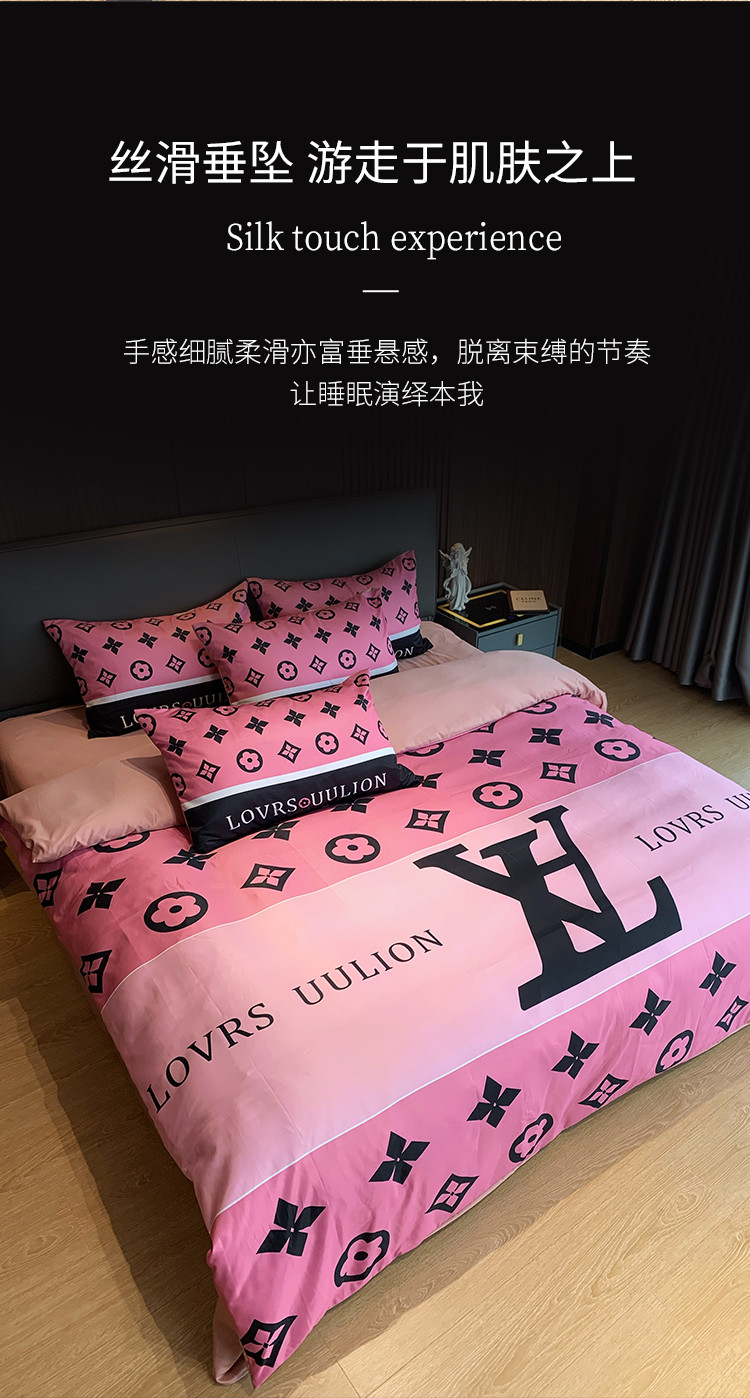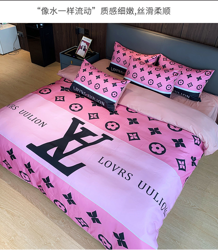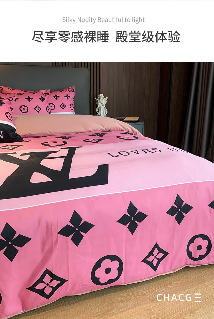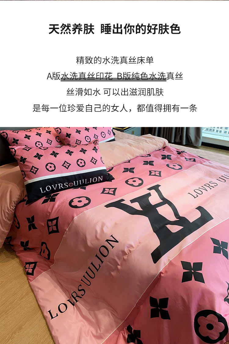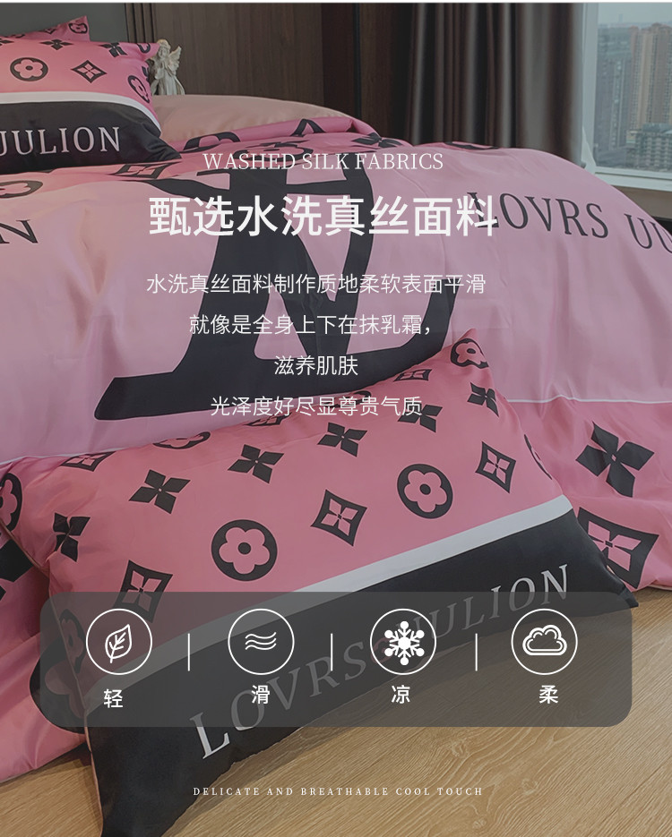 当前位置: 91家纺网 > 商品网购 > 床品套件 > 四件套 > 真丝四件套 > 色鬼布艺 2023新款水洗真丝大牌风四件套 粉色老花