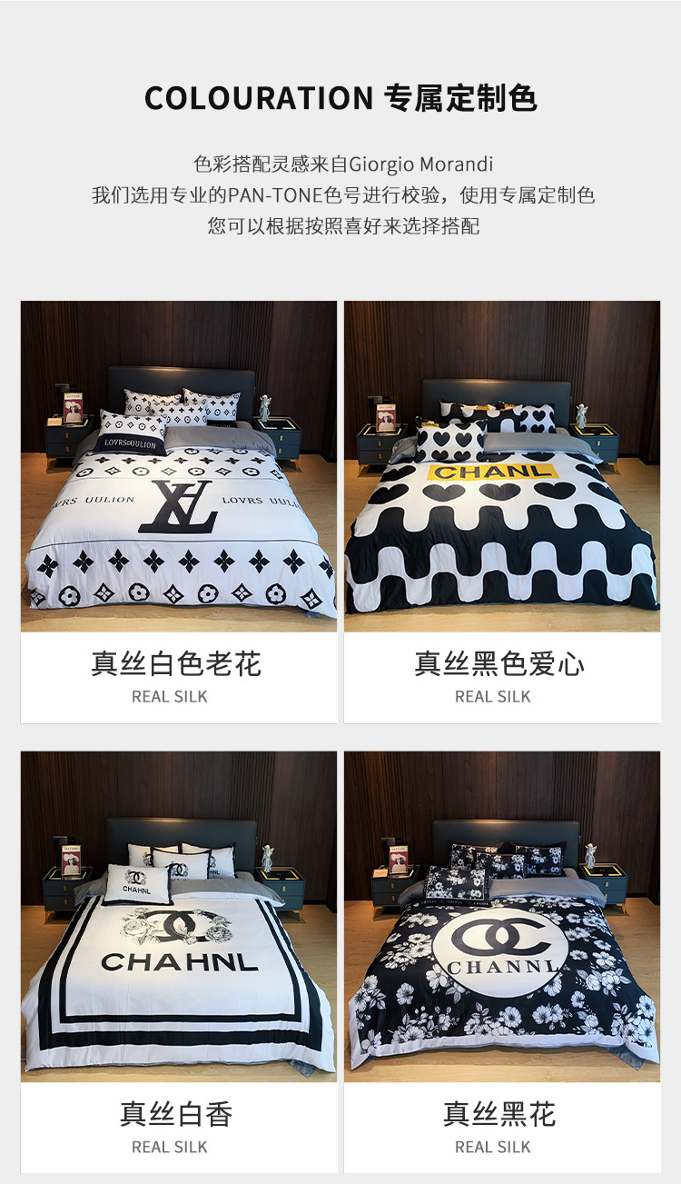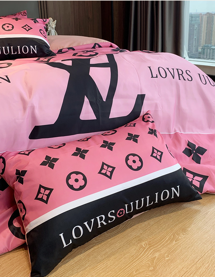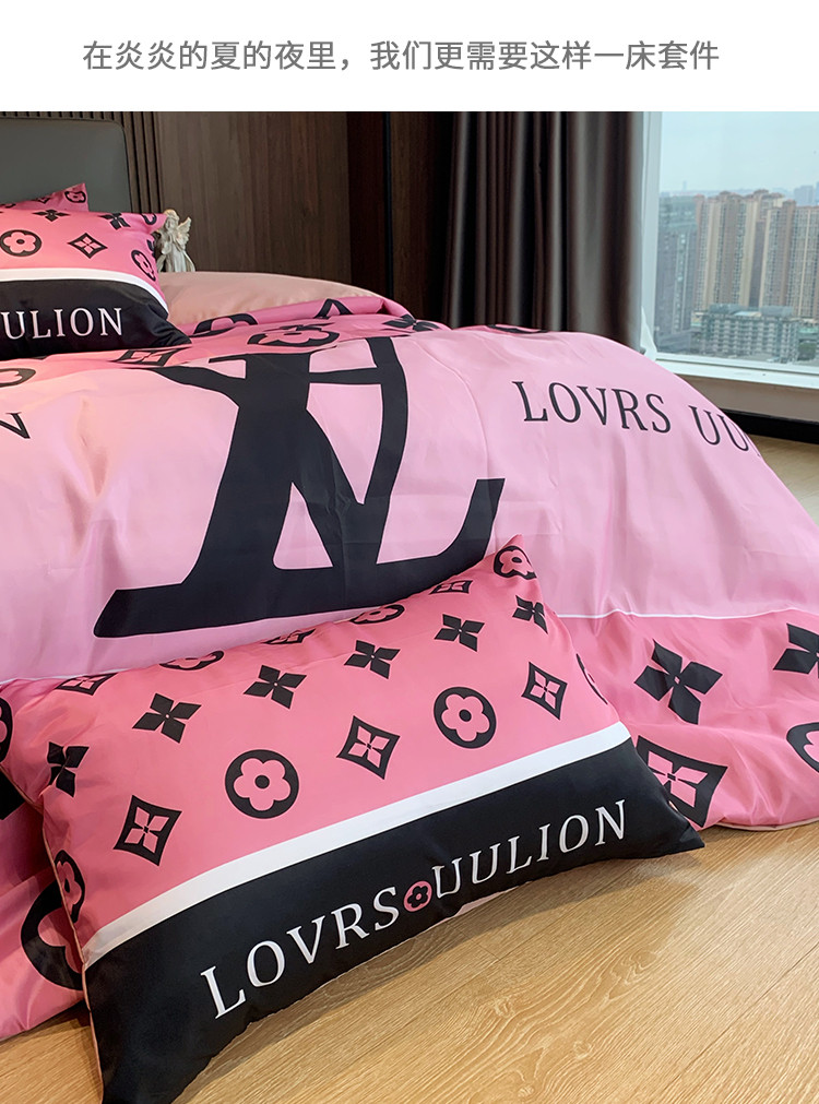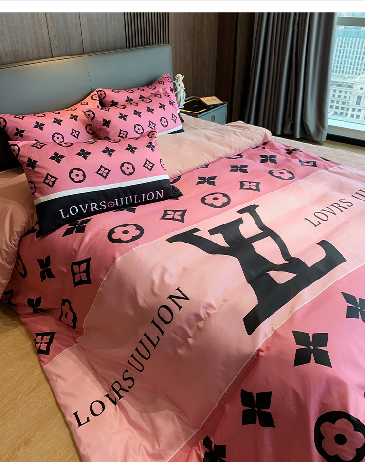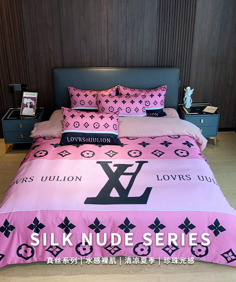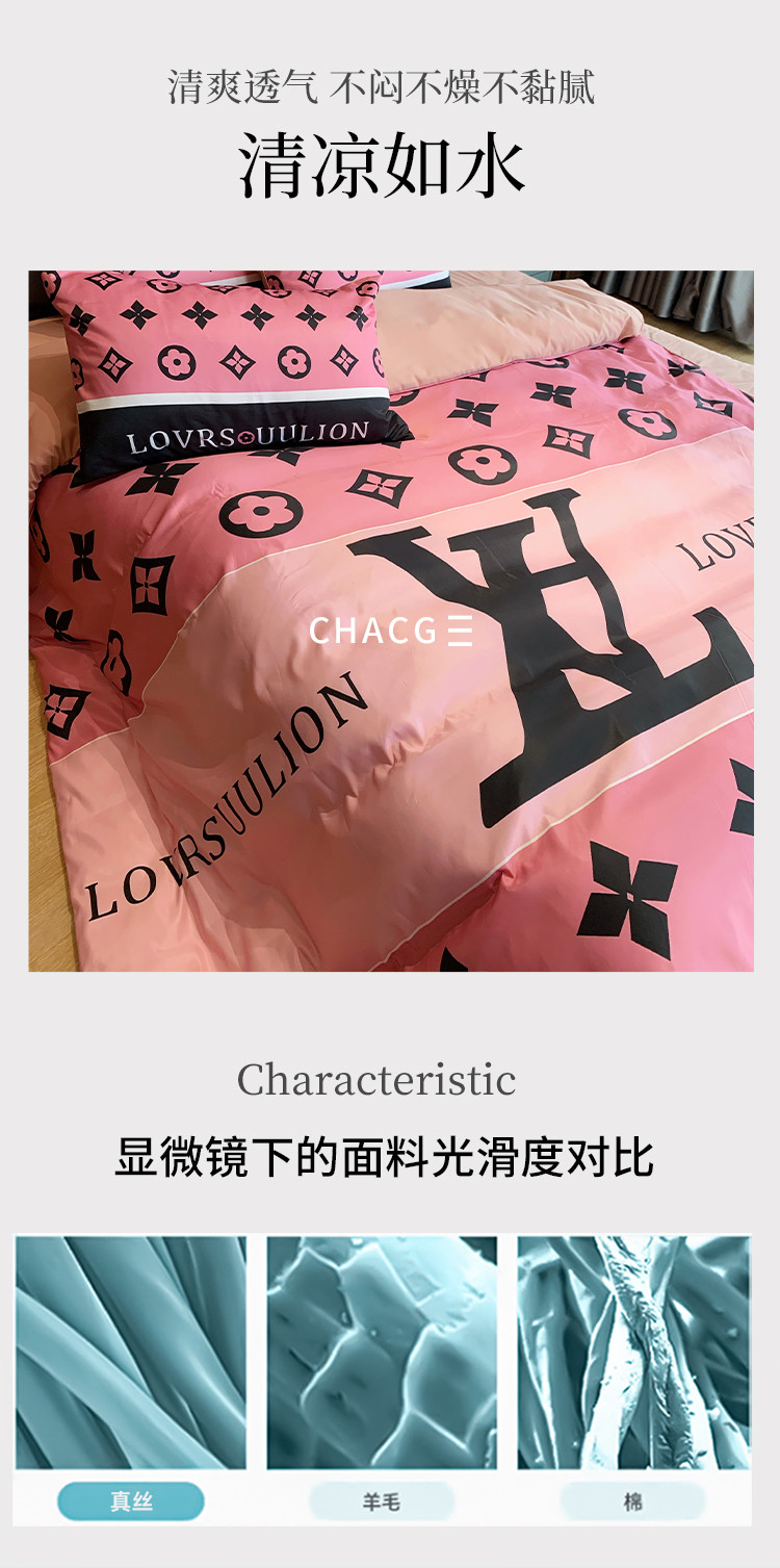 当前位置: 91家纺网 > 商品网购 > 床品套件 > 四件套 > 真丝四件套 > 色鬼布艺 2023新款水洗真丝大牌风四件套 粉色老花