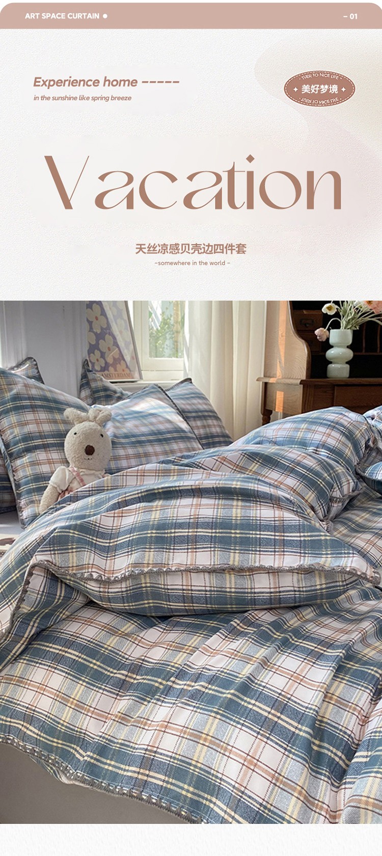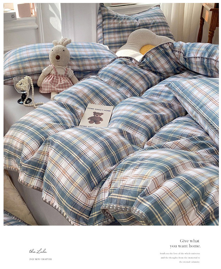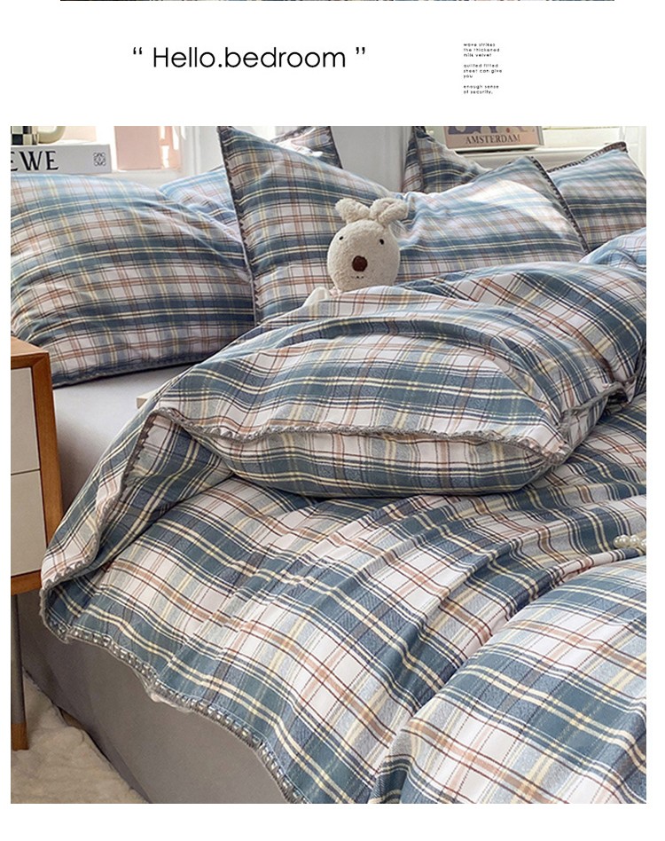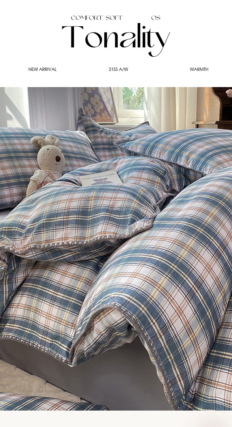 (总)妖妖家纺 2025新款加厚全棉花边牛奶绒格子四件套,醋莓浆果,海川之境,焦糖松果,轻氧绿松,银灰流光,鸢尾之约
