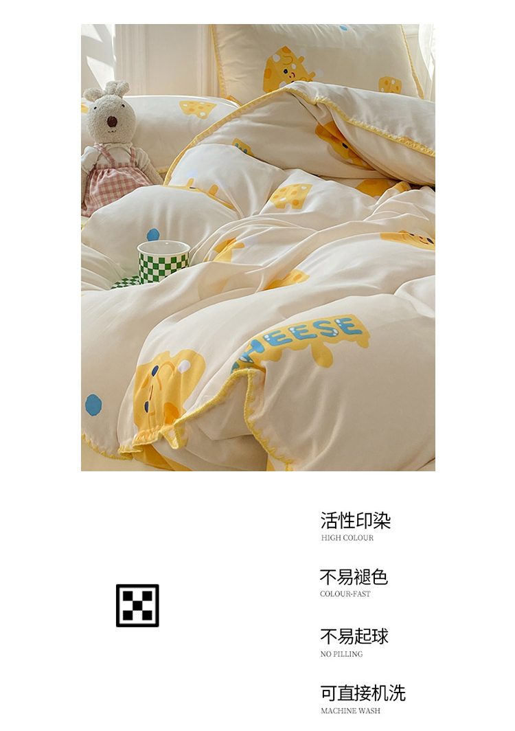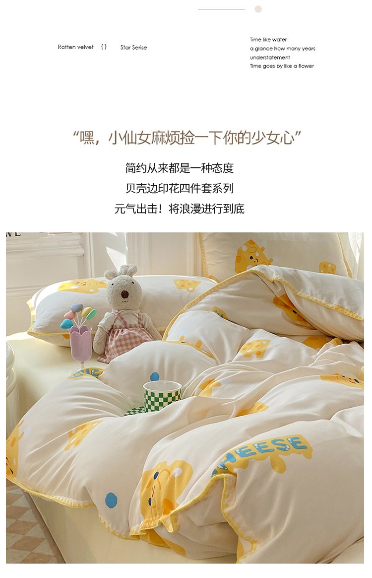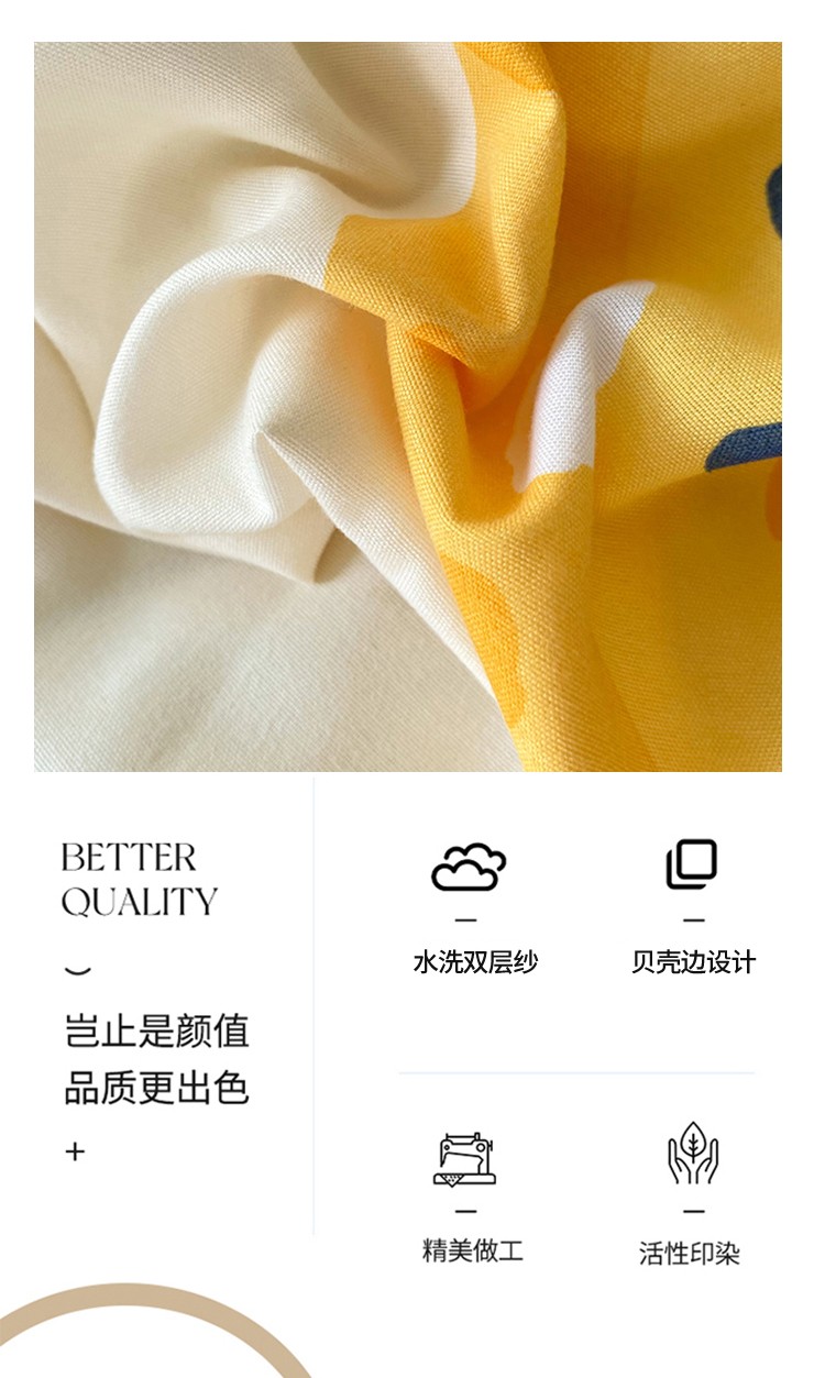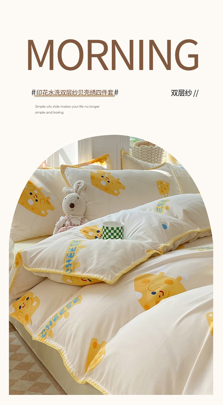 商品名称:妖妖家纺 2023印花水洗双层纱贝克绣四件套 奶酪