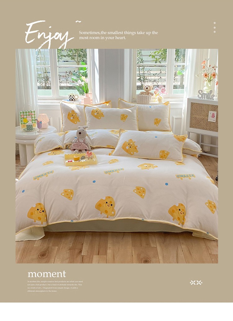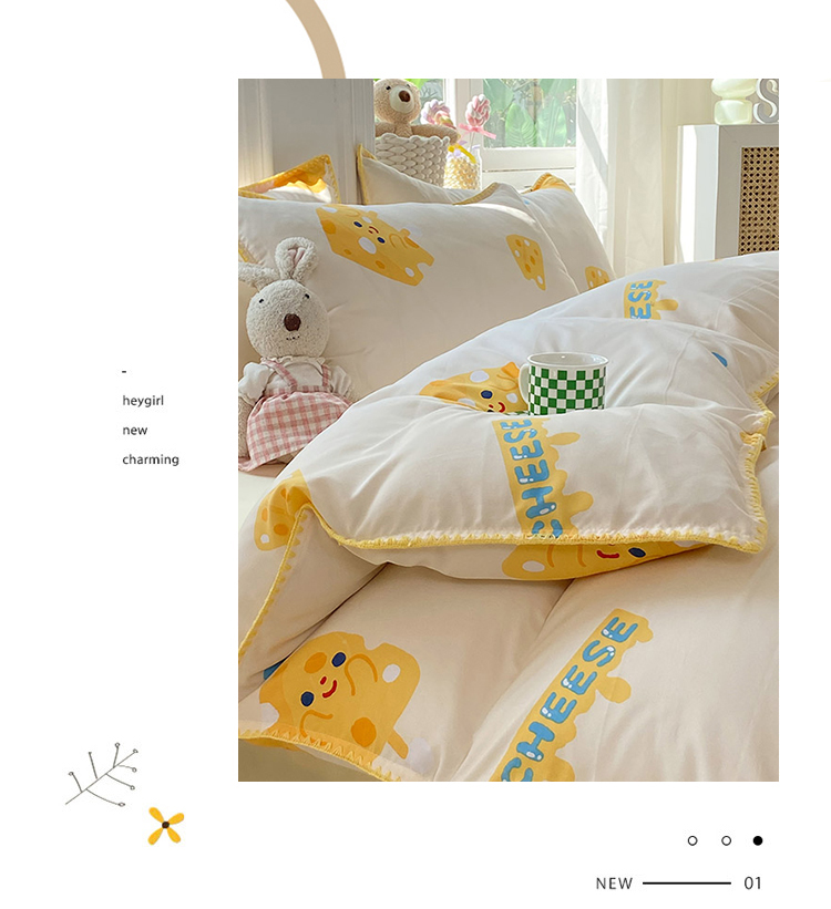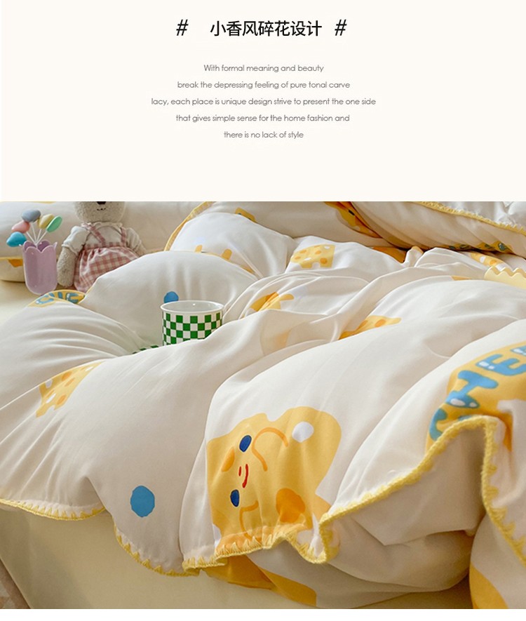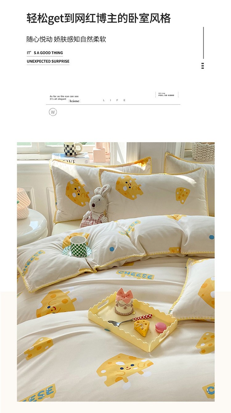 商品名称:妖妖家纺 2023印花水洗双层纱贝克绣四件套 奶酪