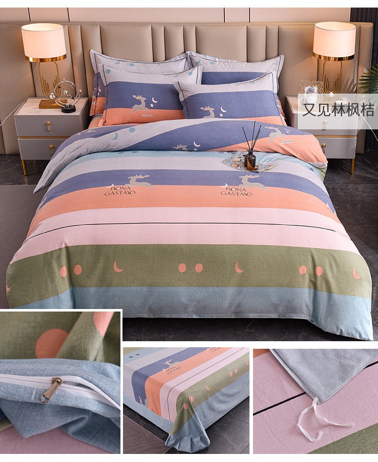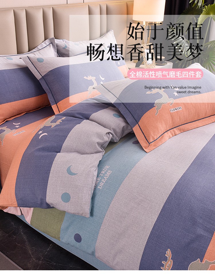 商品名称:橘姿 2023升级喷气全棉磨毛四件套纯棉四件套加厚直播 又见林枫桔