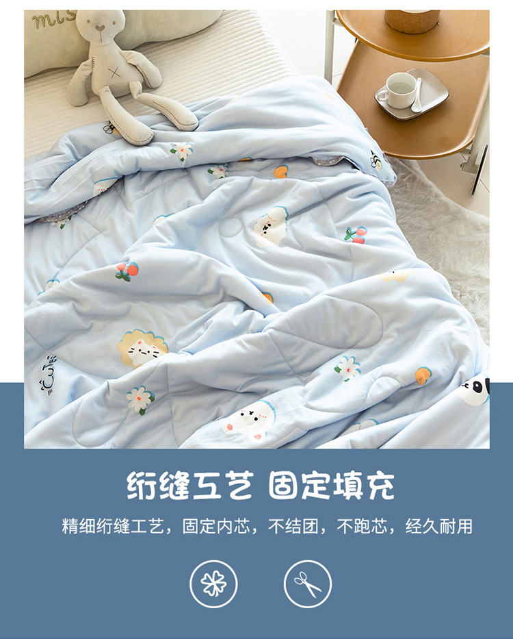(总)喜多兔儿童家纺 2025新款小惊喜儿童蚕丝蛋白天丝抗菌夏凉被,粉色礼貌小鸭,粉色围裙小兔宝,黄色多彩小狗,黄色画画小猫,灰蓝色活动熊猫,灰蓝色运动小狮子,卡其色勤劳小马,卡其色围兜小熊,绿色萌萌恐龙,绿色微笑小猴