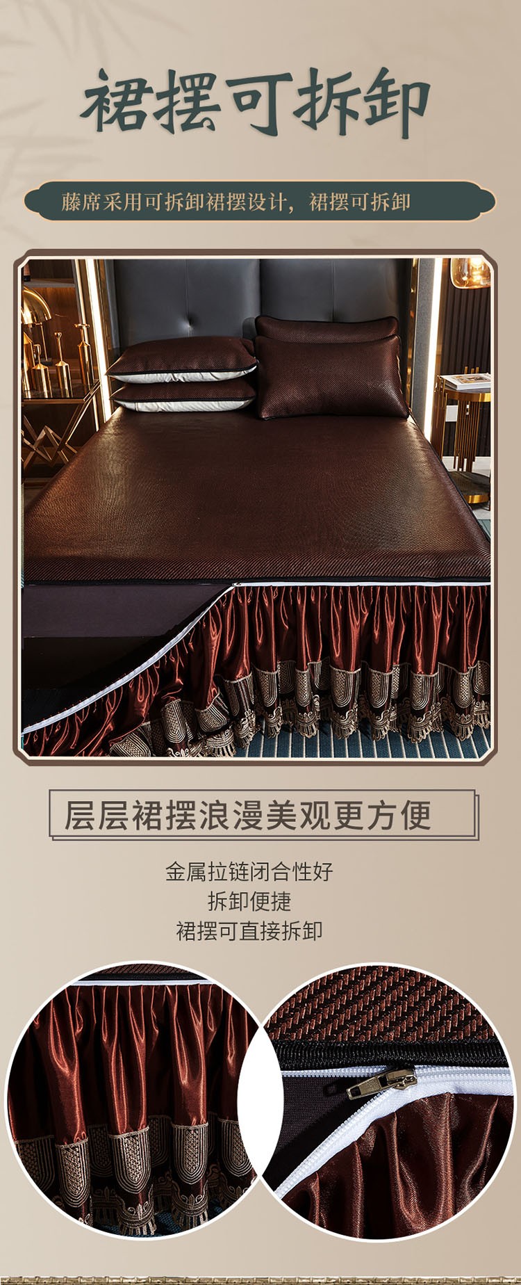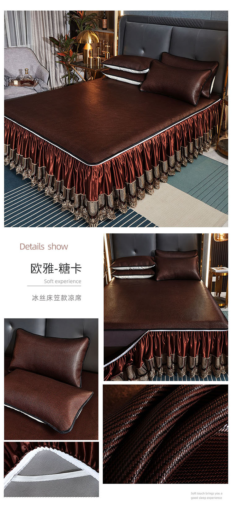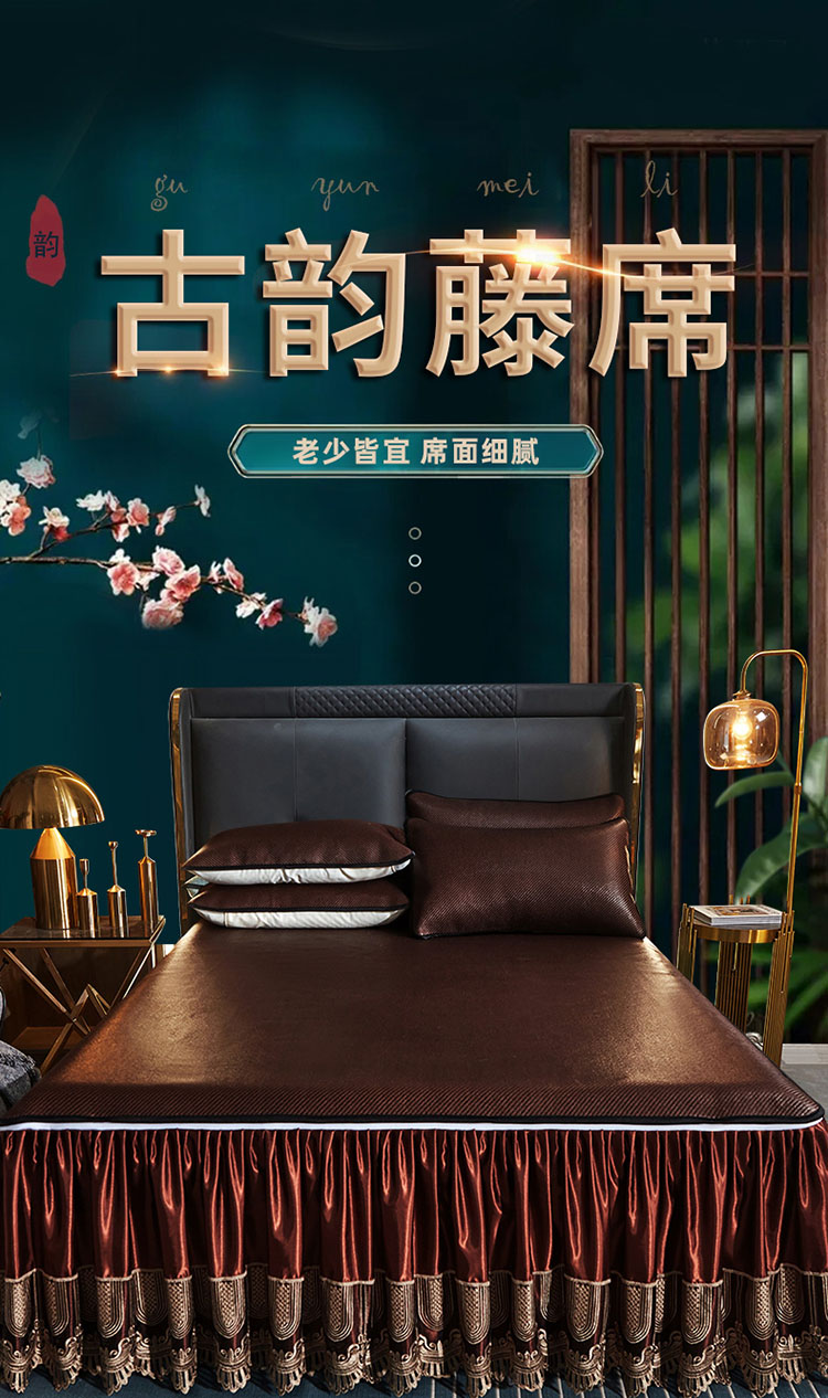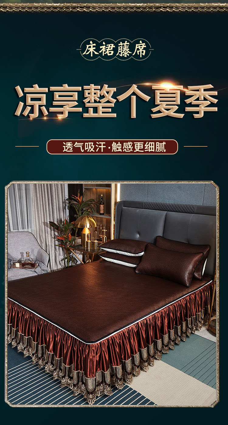 商品名称:恋尚 2024新款冰藤软凉席床裙款三件套(可脱卸) 欧雅-糖卡