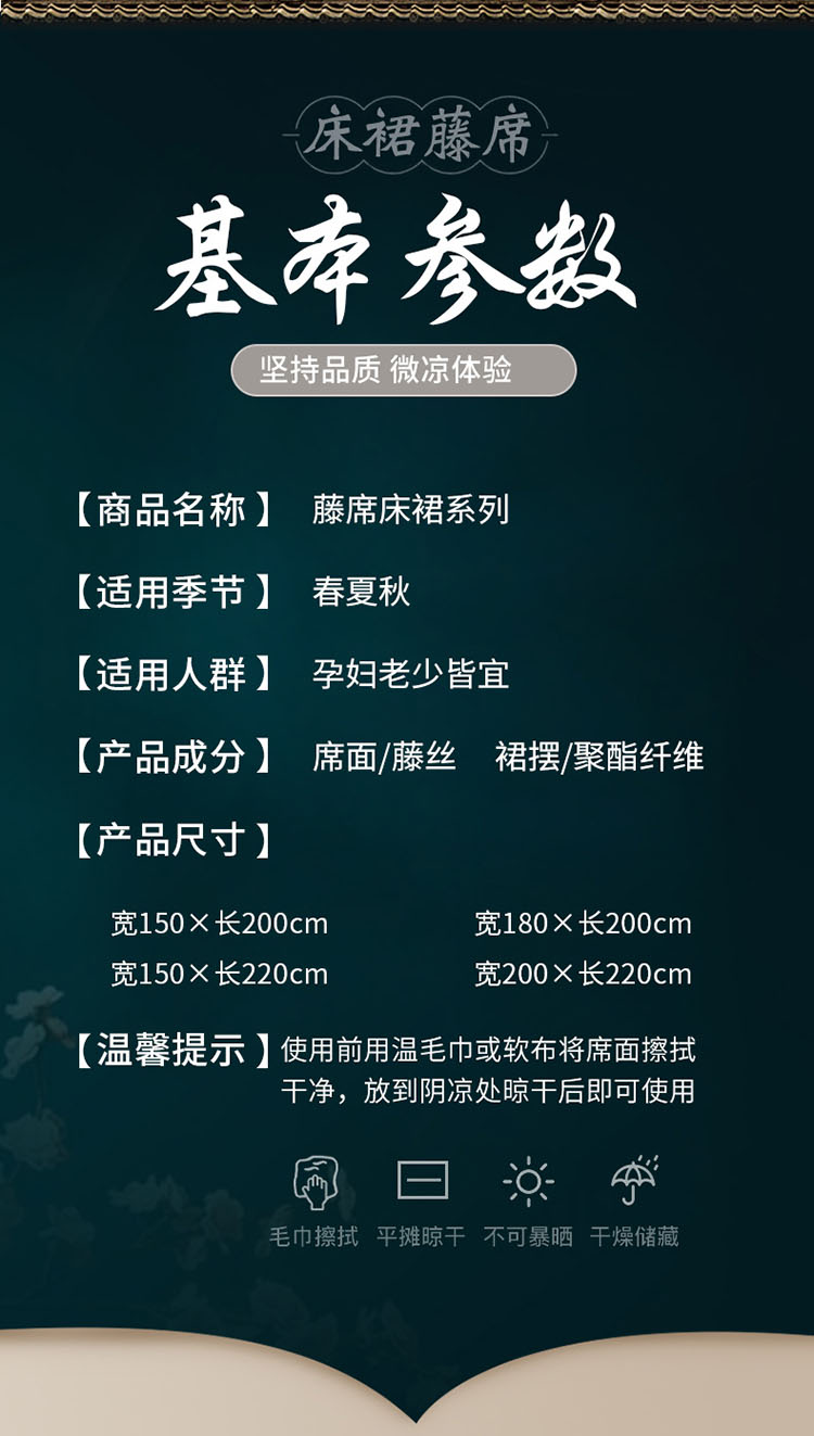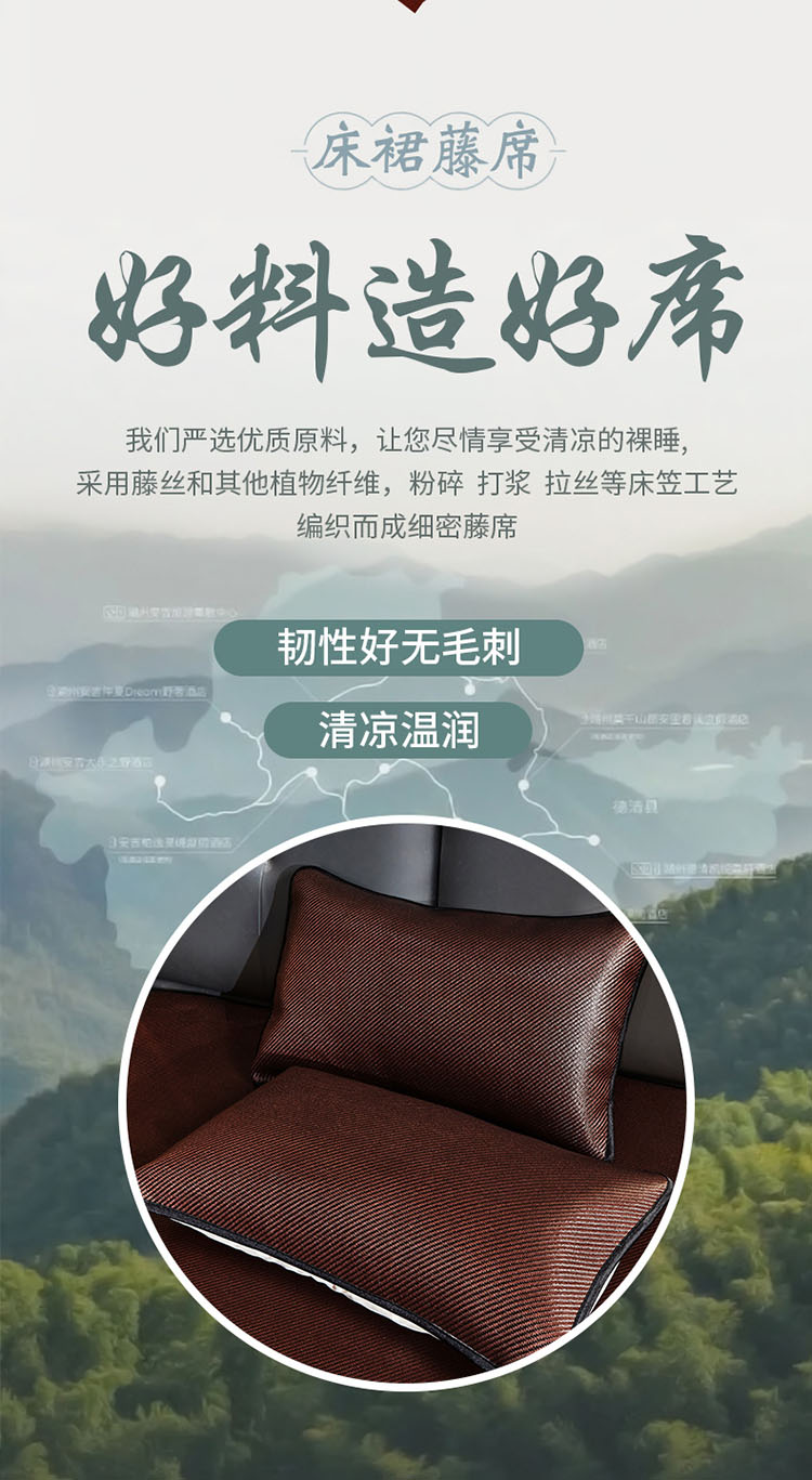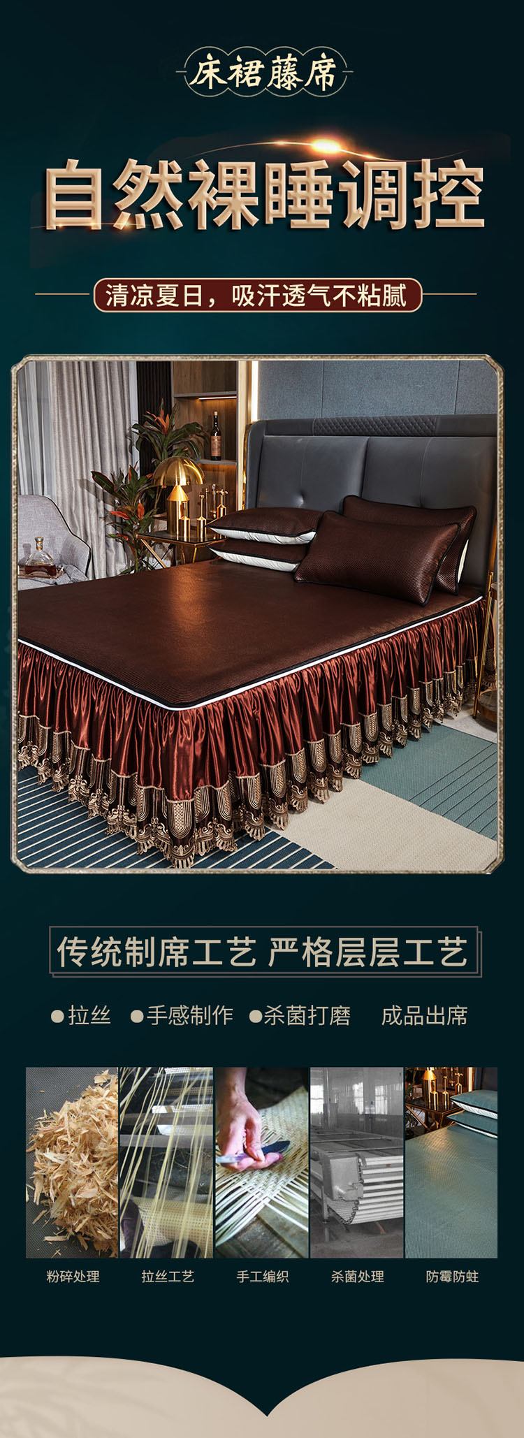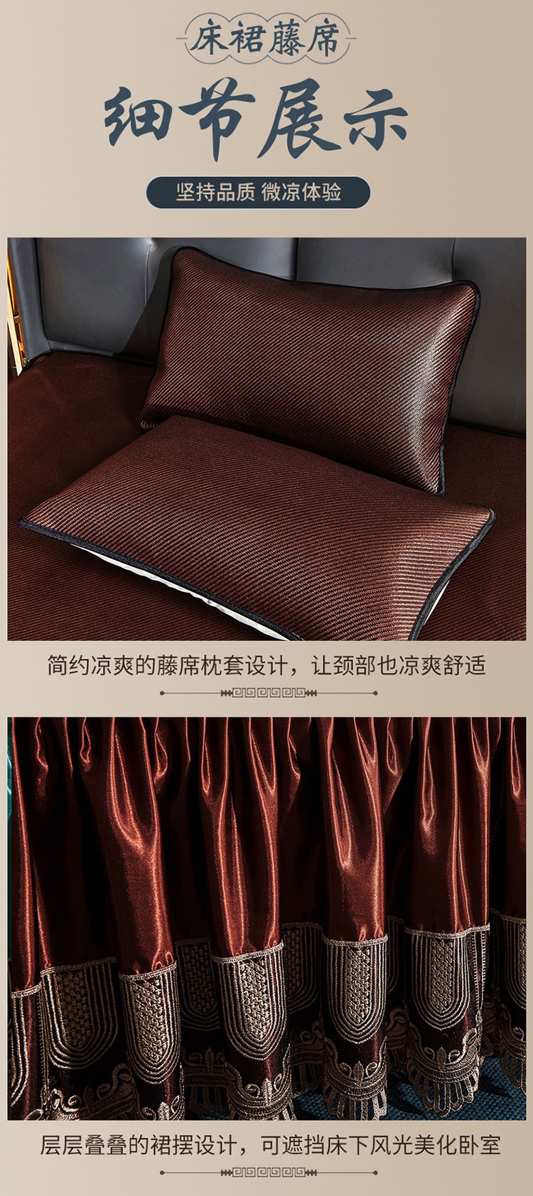 商品名称:恋尚 2024新款冰藤软凉席床裙款三件套(可脱卸) 欧雅-糖卡