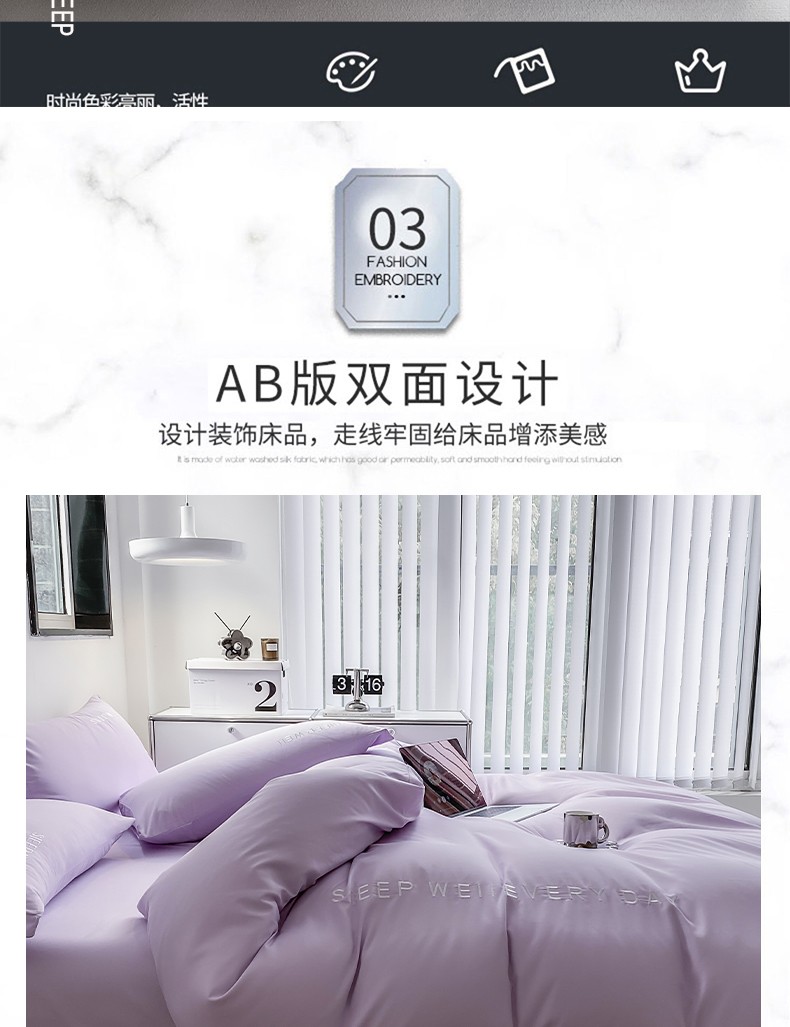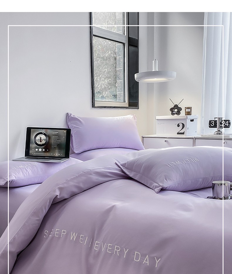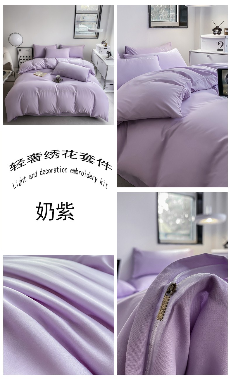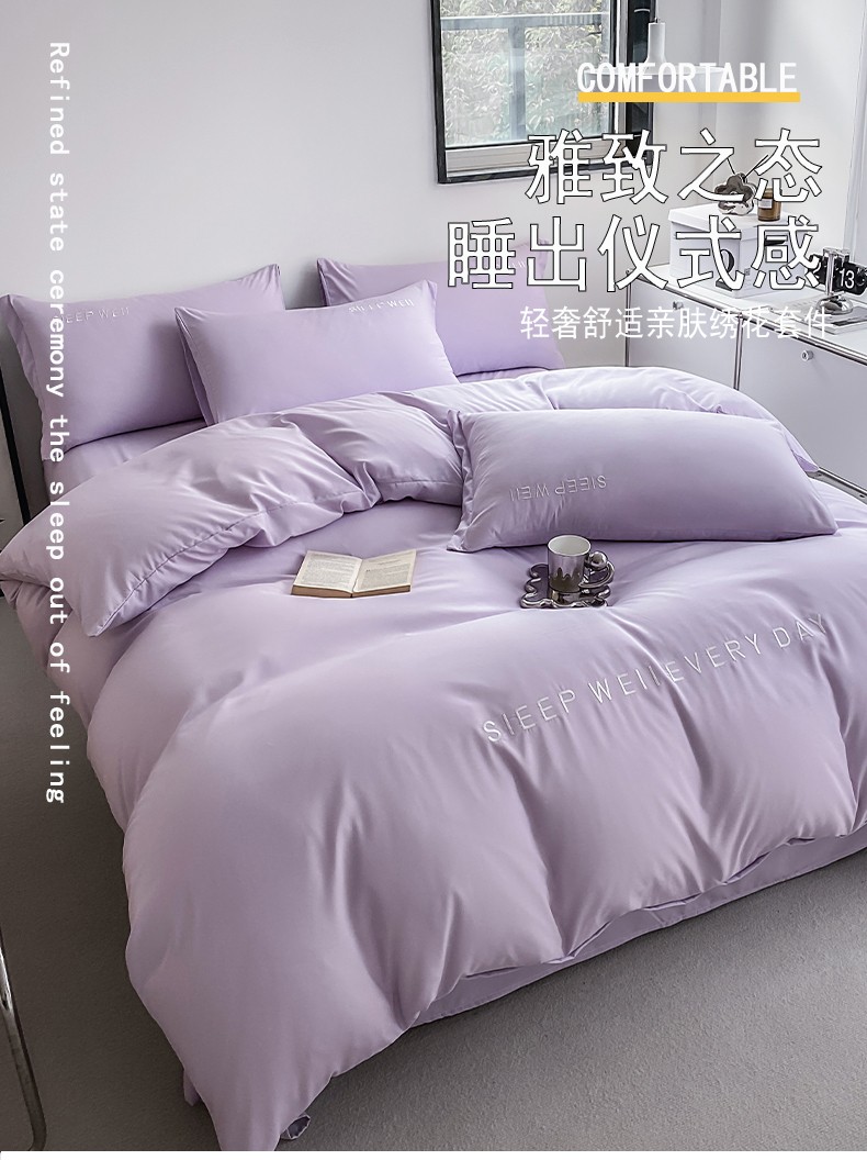 当前位置: 91家纺网 > 商品网购 > 床品套件 > 四件套 > 普通磨毛四件套 > 啊雅 2025新款双拼绣花四季款磨毛四件套 奶紫