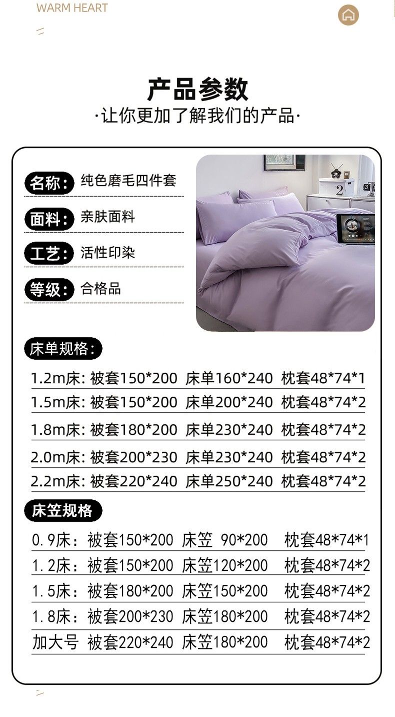 1.8m床单款四件套(180*220cm被套 230*240cm床单 48*74cm*2枕套) | ¥52.00 |