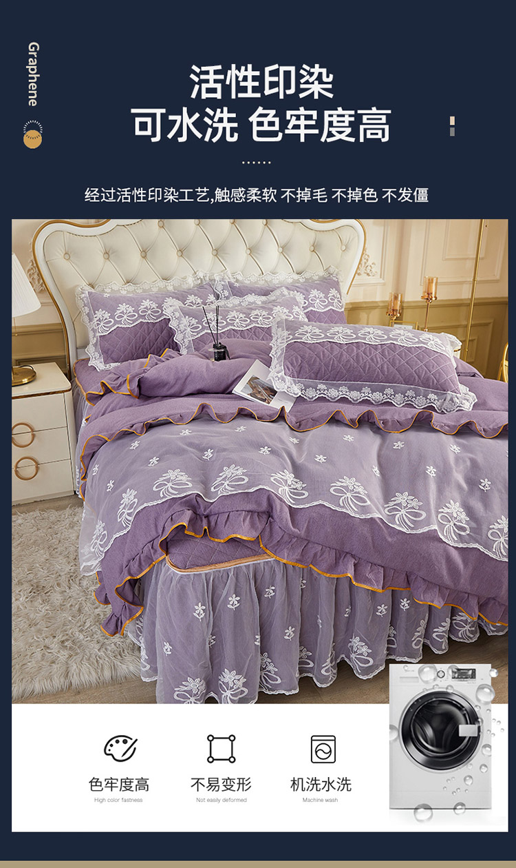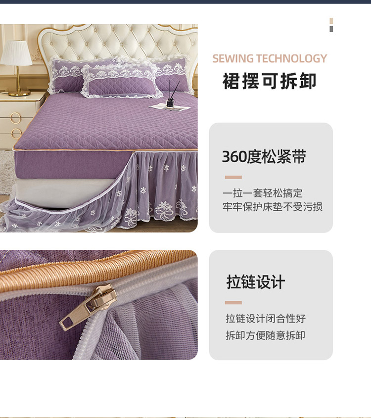 当前位置: 91家纺网 > 商品网购 > 床品套件 > 四件套 > 恋尚 2023新款色织系列床笠床裙可脱卸 四件套 芙娅- 浅紫