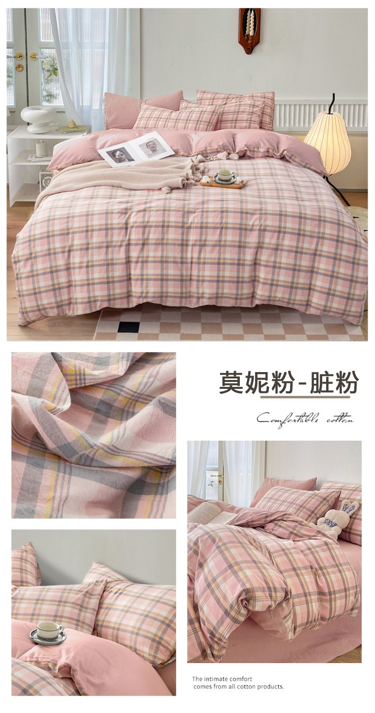 当前位置: 91家纺网 > 商品网购 > 床品套件 > 四件套 > 全棉普通四件套 > 尹黛尔 2024全棉色织水洗棉四件套纯棉被套床单床笠学生三件套 莫妮粉+脏粉