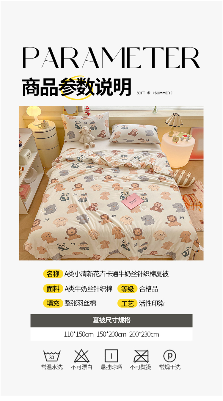 商品名称:桃子 2023新款A类ins高品质小清新花卉卡通牛奶丝针织棉夏被 针织棉夏被-动物园