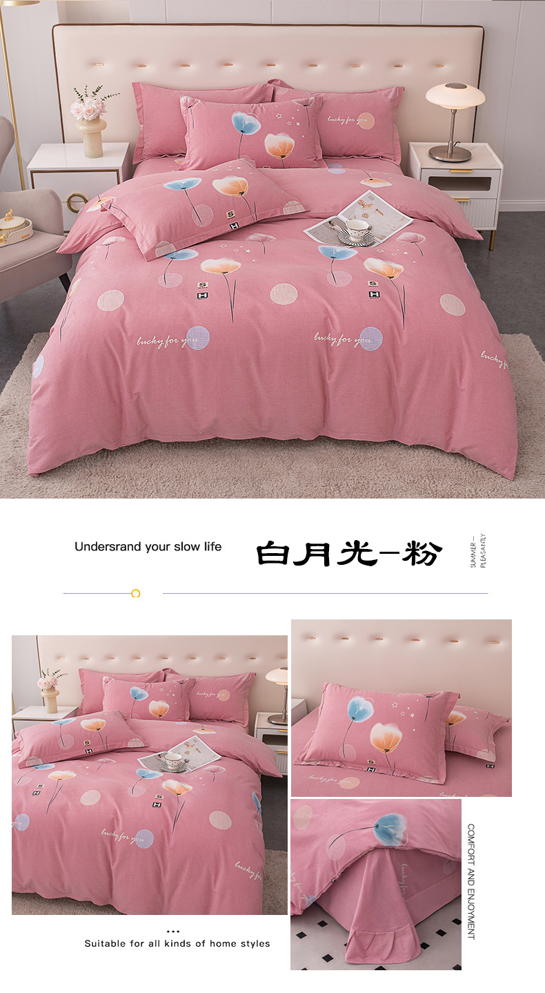 商品名称:喜四方 2024新款全棉磨毛全棉印花四件套 白月光-粉