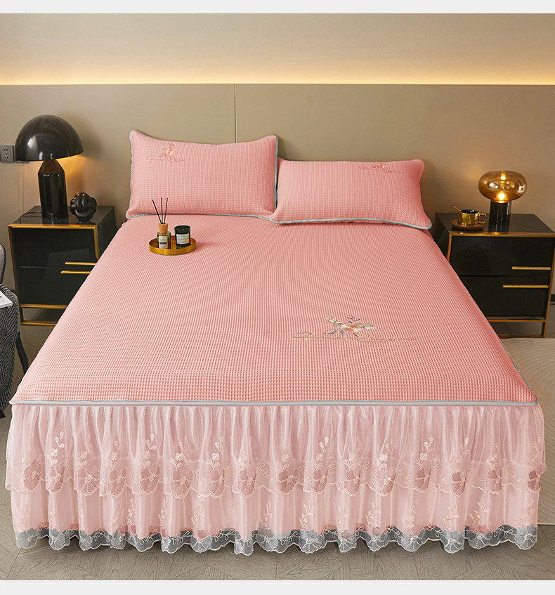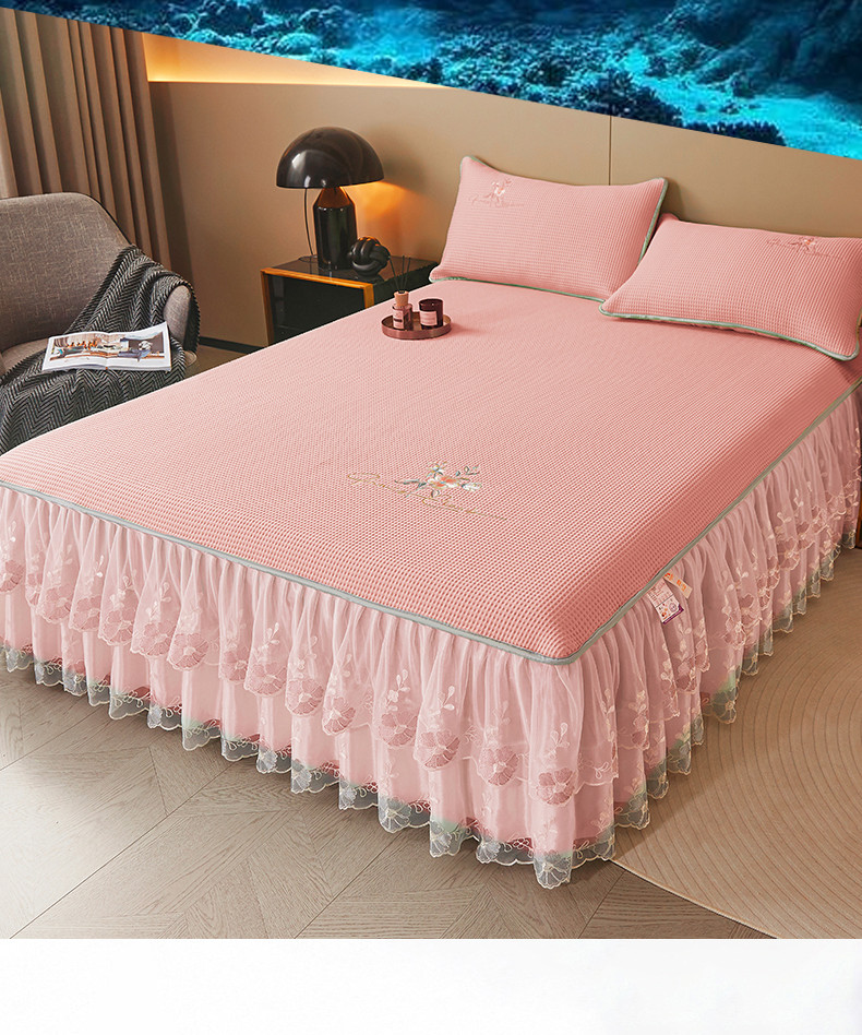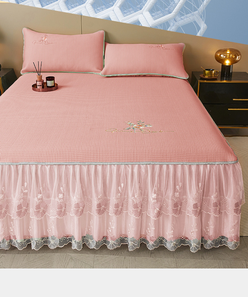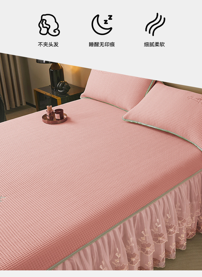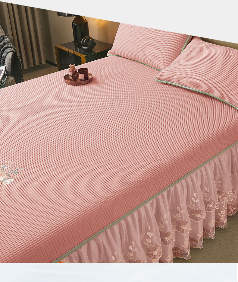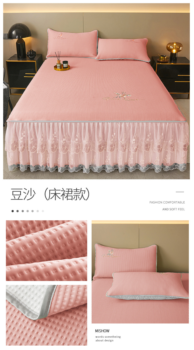 商品名称:恒爱 2023 刺绣华夫格床裙三件套 豆沙(床裙款)