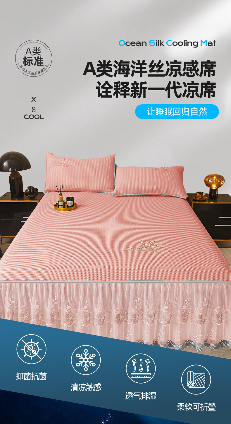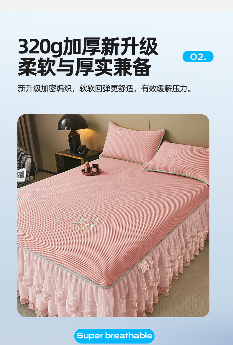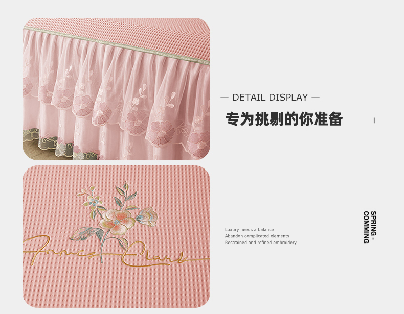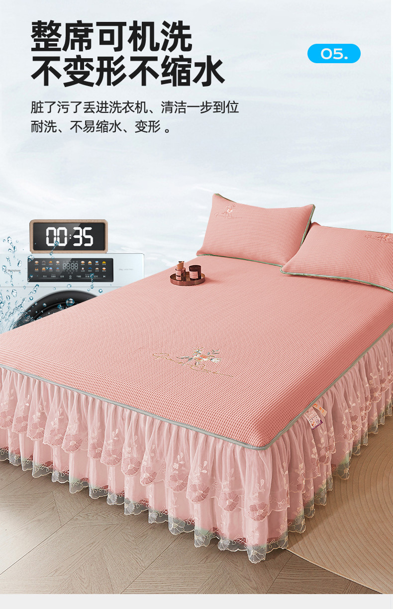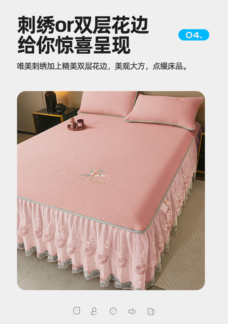 商品名称:恒爱 2023 刺绣华夫格床裙三件套 豆沙(床裙款)
