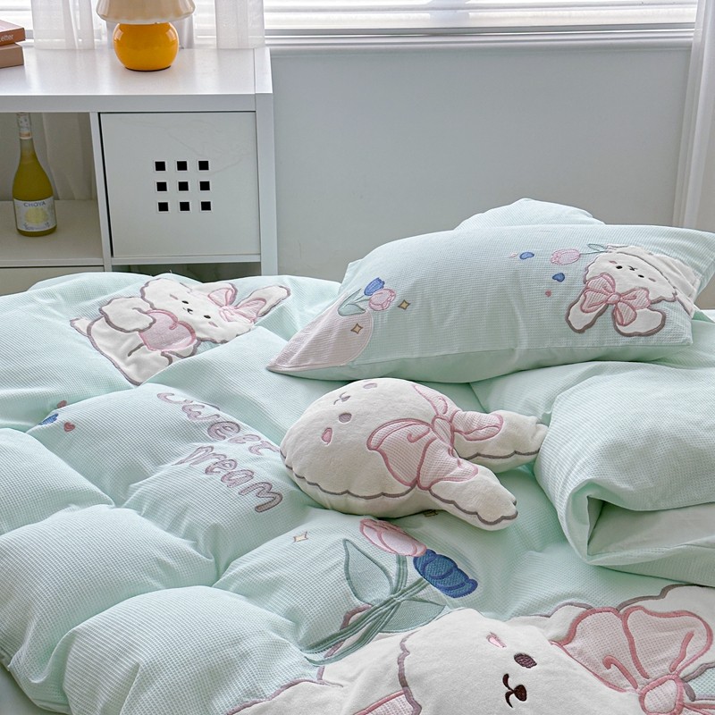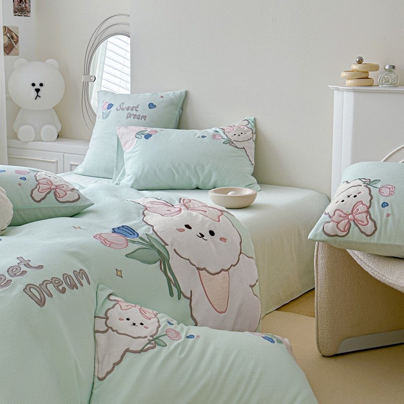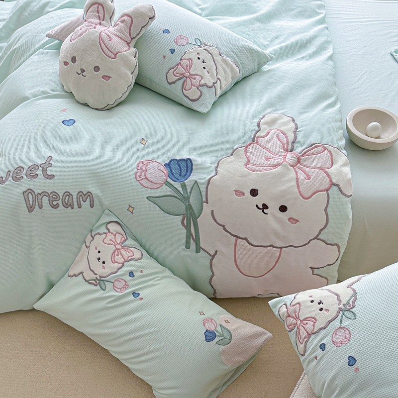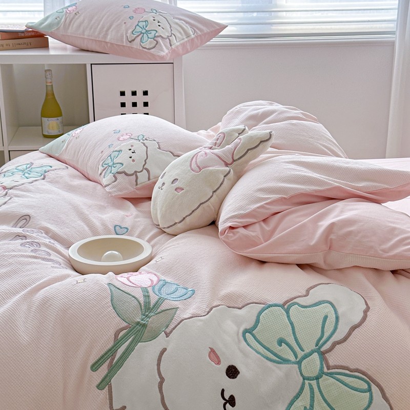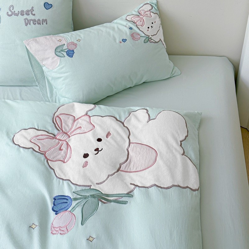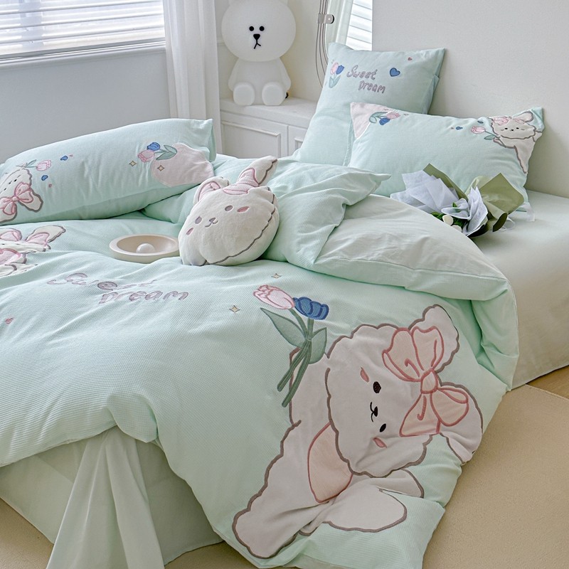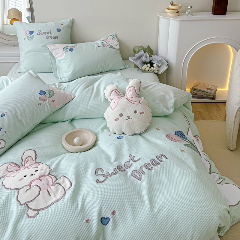 商品名称:(总)曼布缇 2025新款A类60s全棉华夫格水洗棉贴布绣花四件套