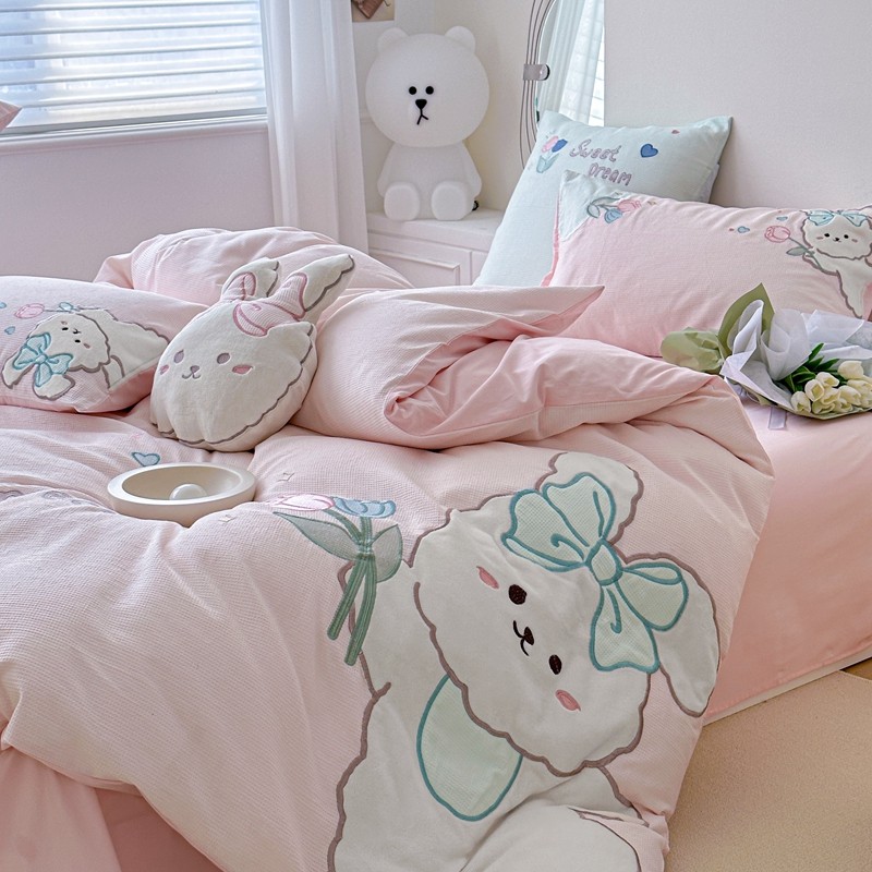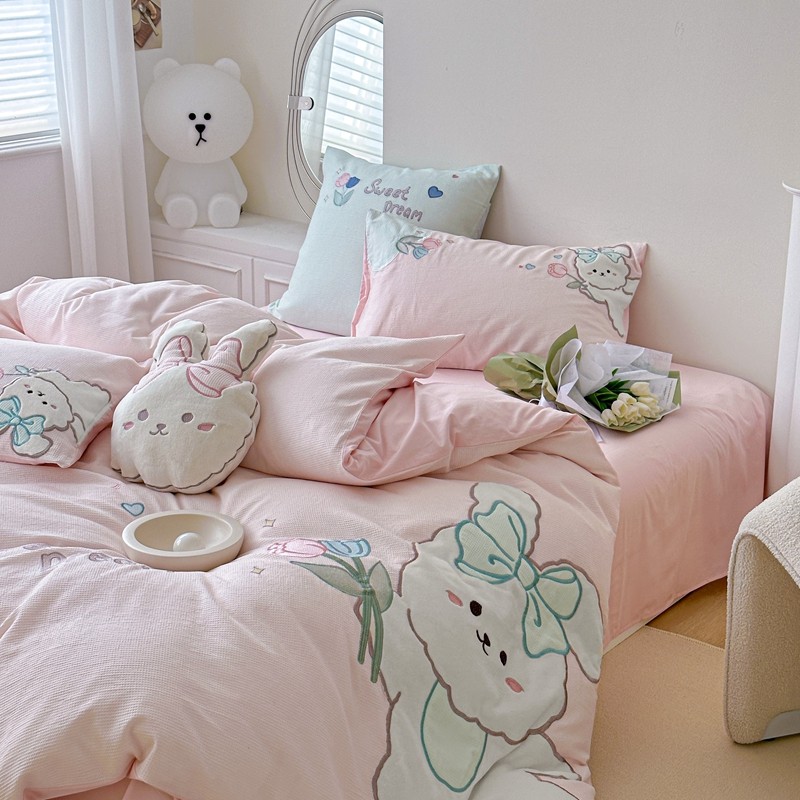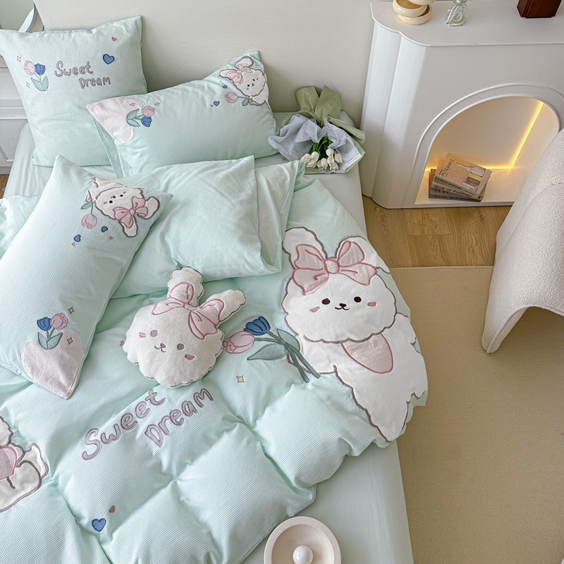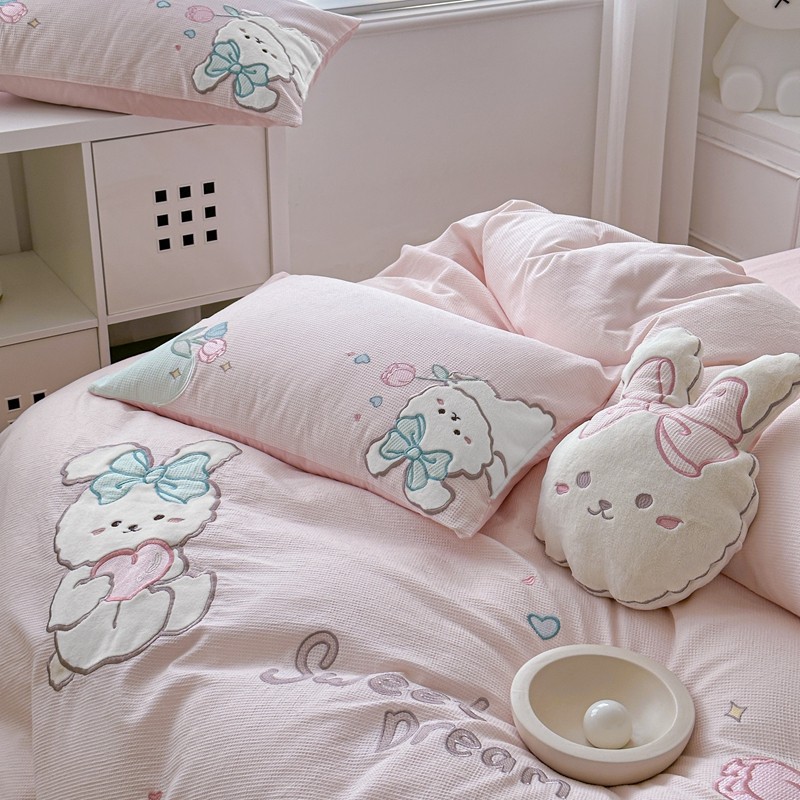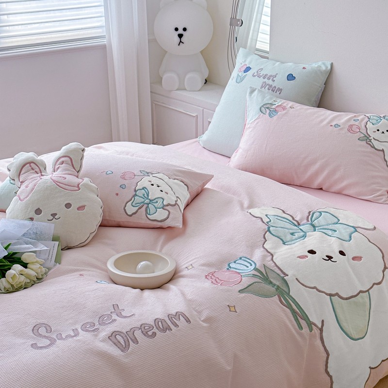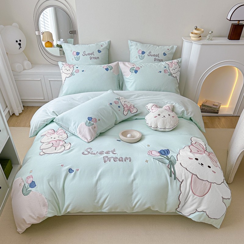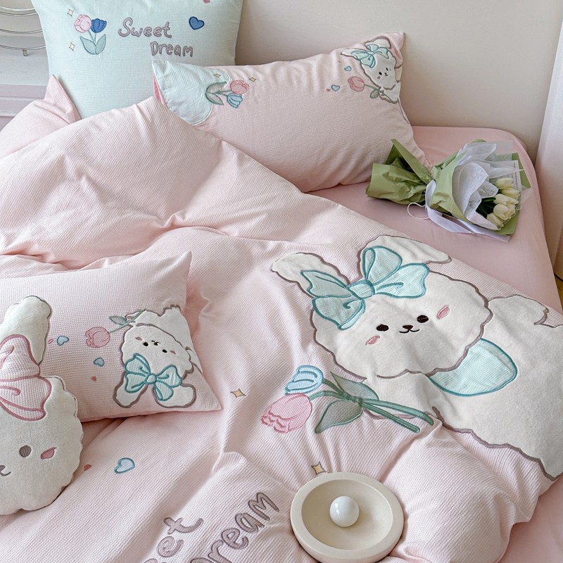 商品名称:(总)曼布缇 2025新款A类60s全棉华夫格水洗棉贴布绣花四件套