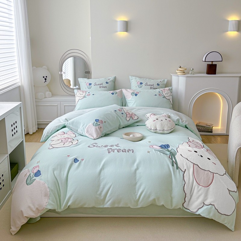 (总)曼布缇 2025冬季新品MBT工艺款加厚230g高克重牛奶绒绣花四件套-怪可爱 会员减20元【控价:券后298/328起】,怪可爱