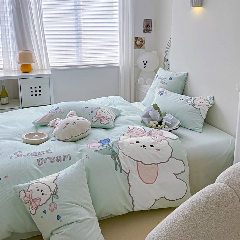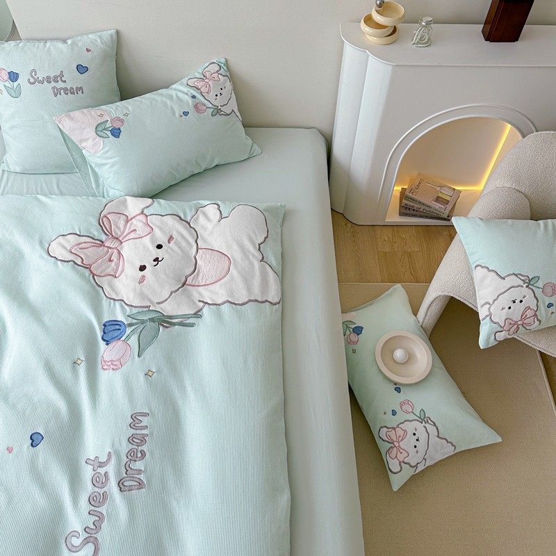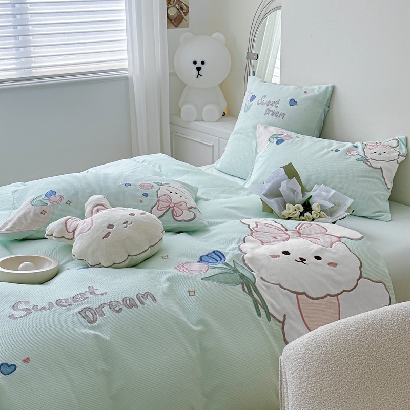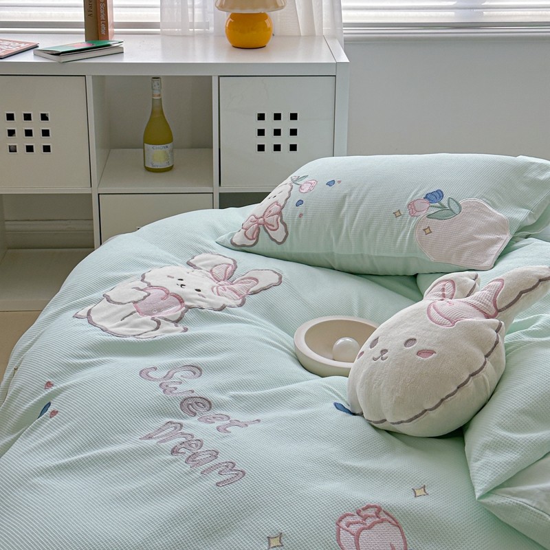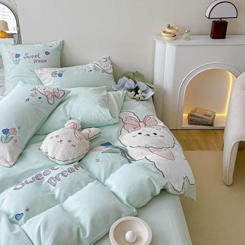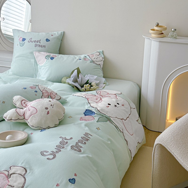 (总)曼布缇 2025新款A类60s全棉华夫格水洗棉贴布绣花四件套