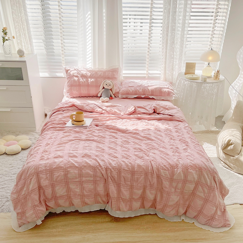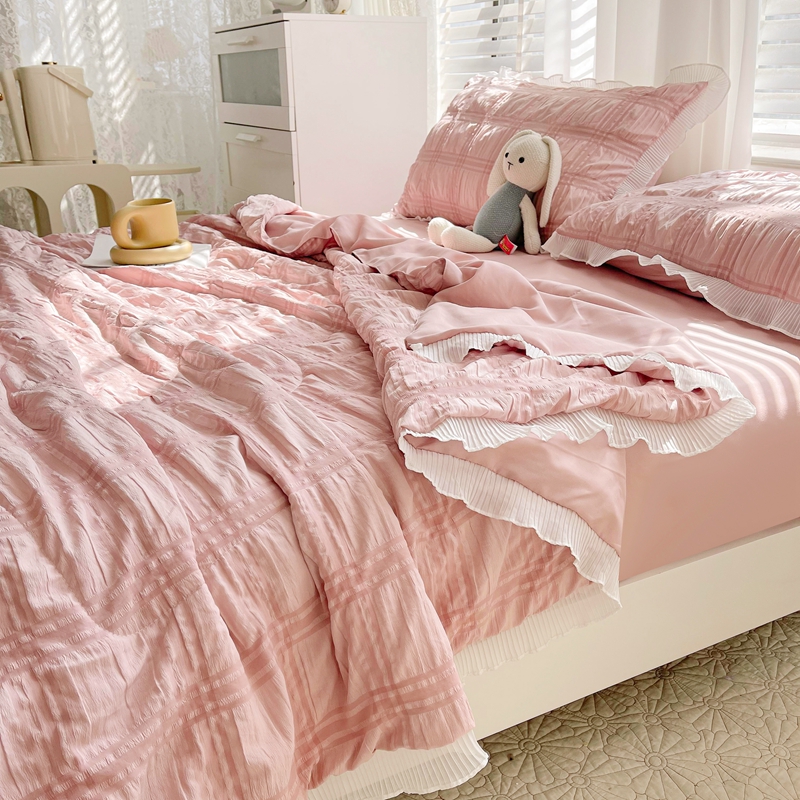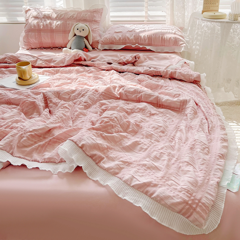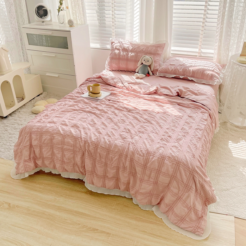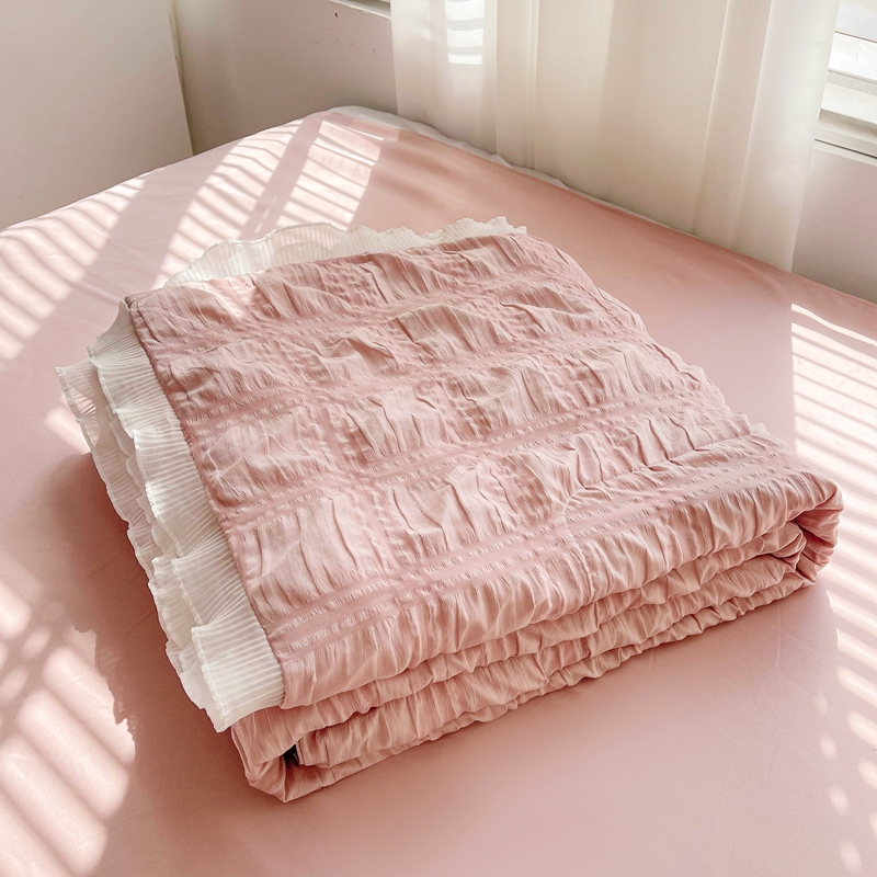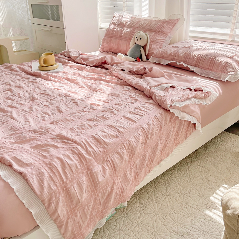 蓝冰家纺 2023新款泡泡纱夏被三件套 豆沙粉