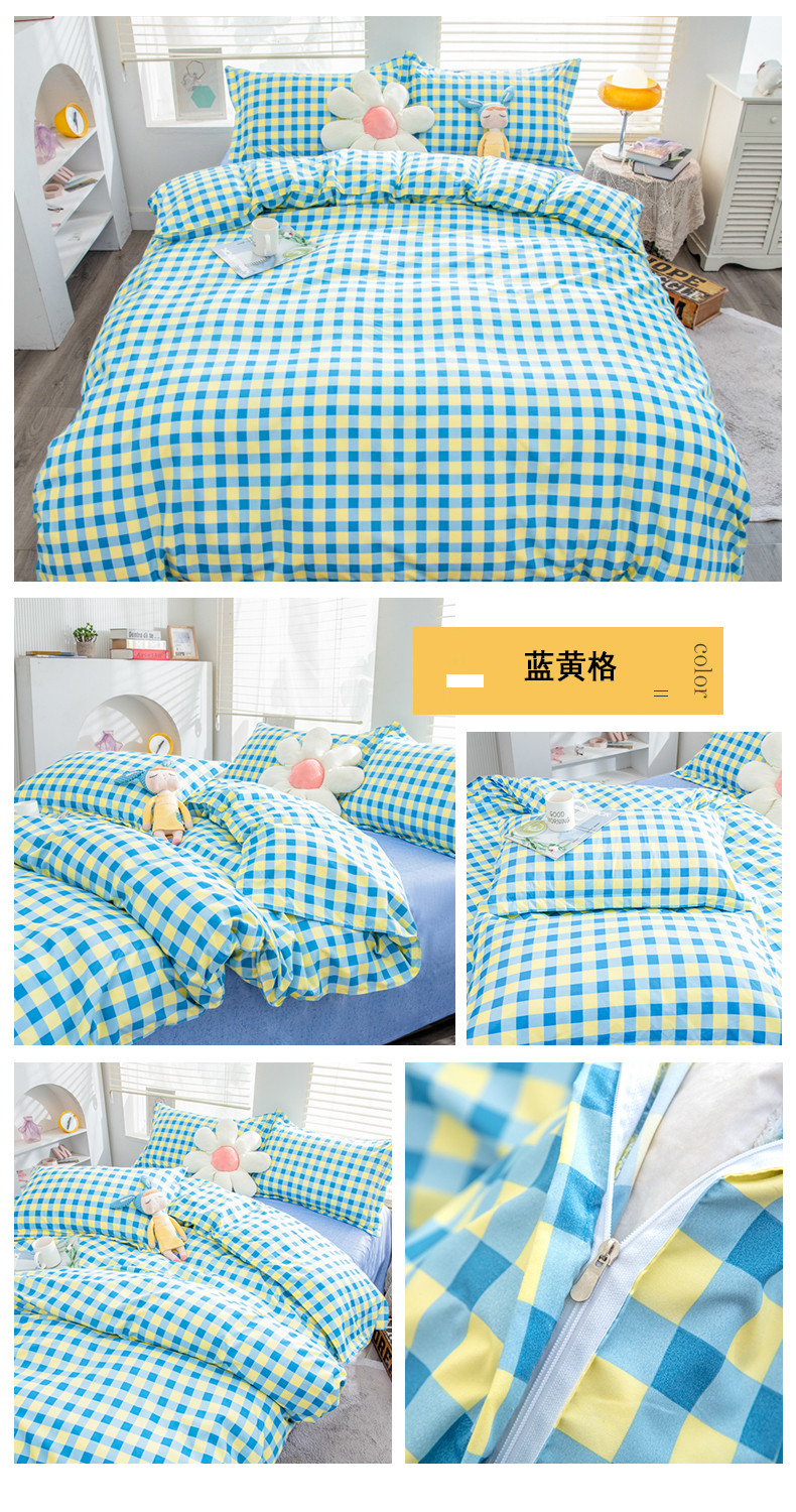 乐居坊 2023新款芦荟棉四件套(5月份新花型) 蓝黄格
