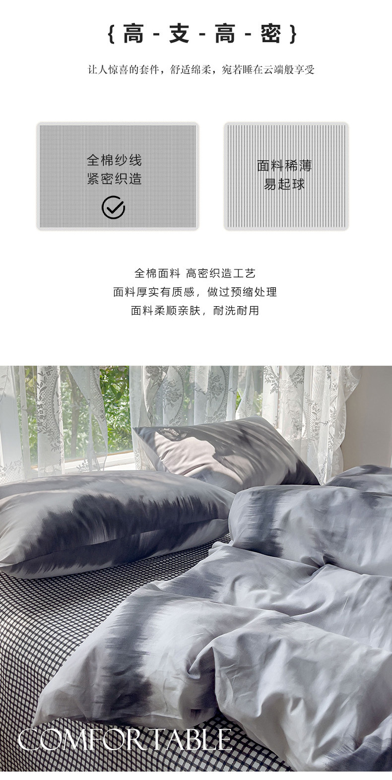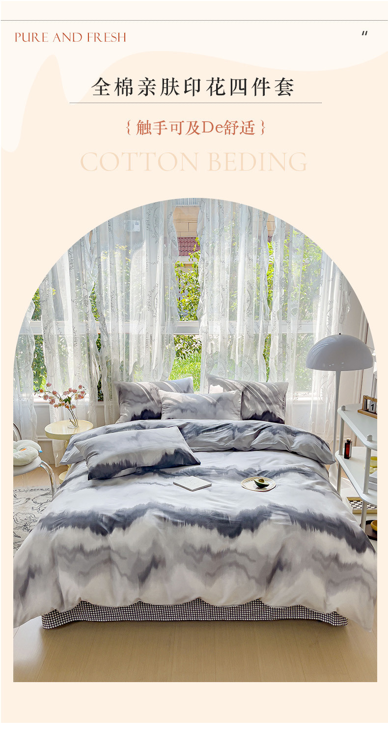 商品名称:感遇家纺 2023新款全棉印花四件套 水墨