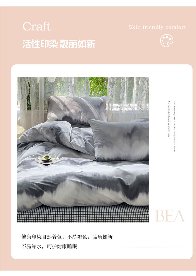 感遇家纺 2023新款全棉印花四件套 水墨