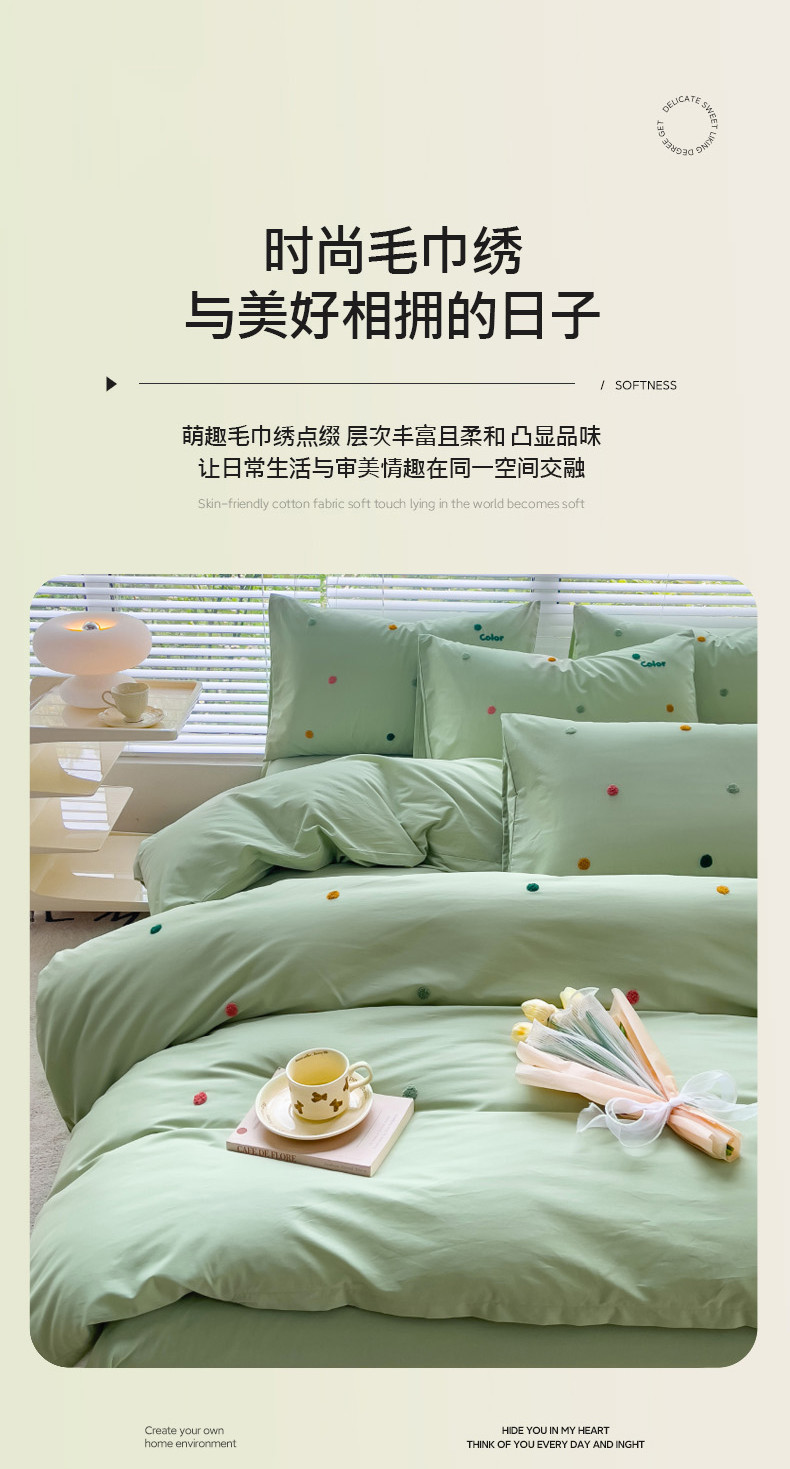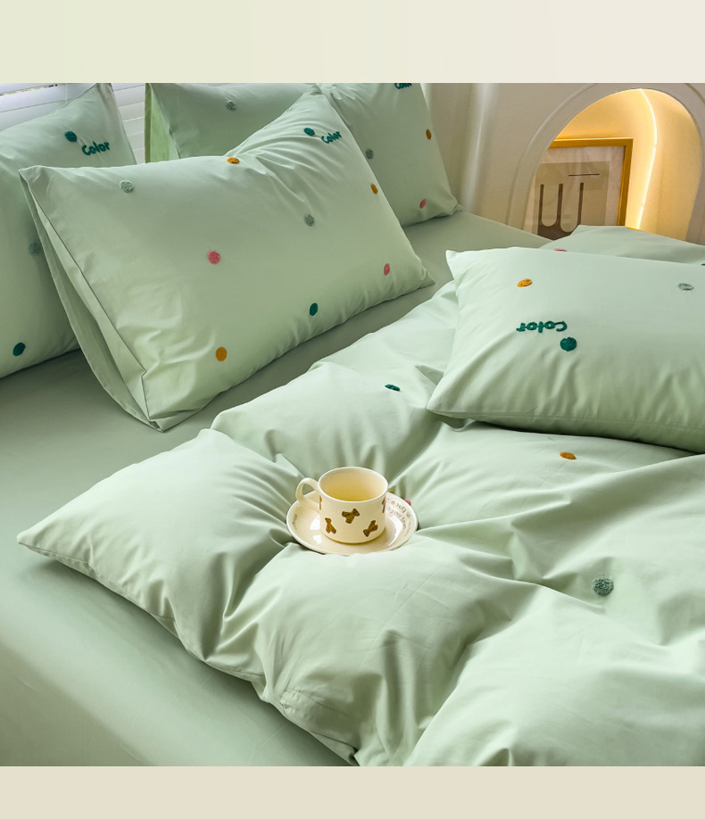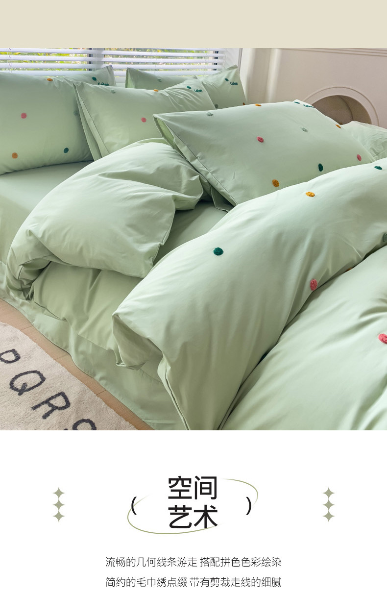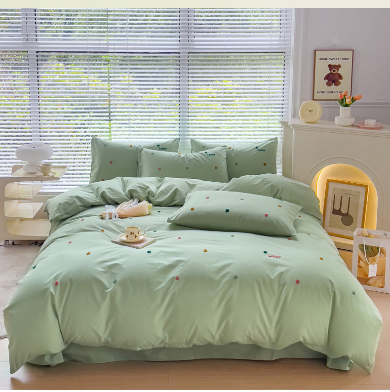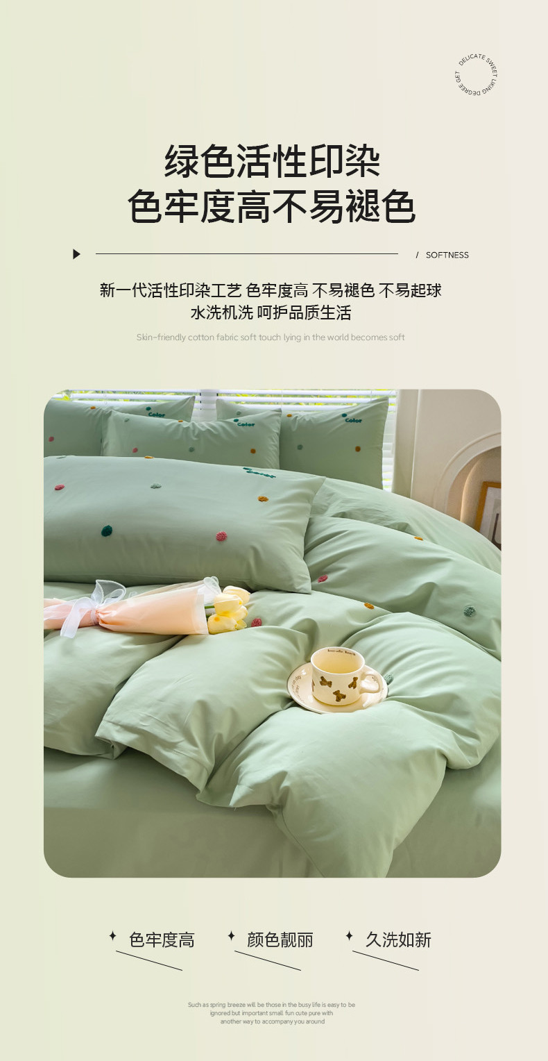 丽涵家纺 2024新款40S全棉水洗棉绣花四件套-夏天 夏天-纯茶绿