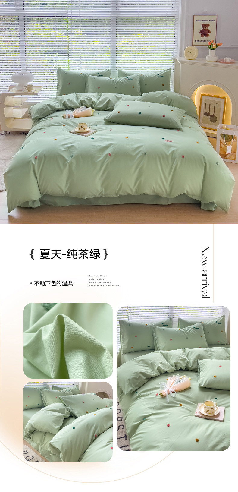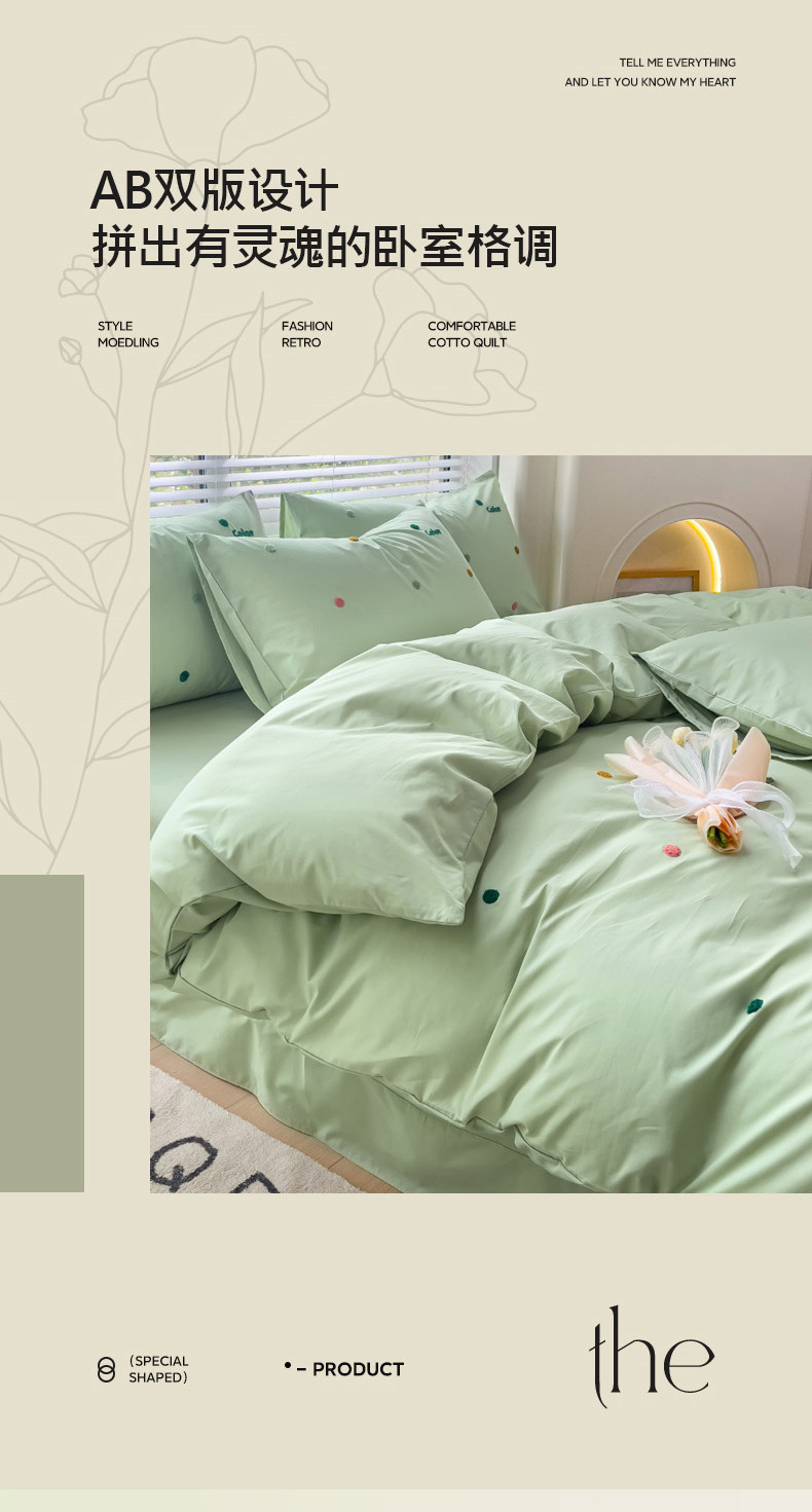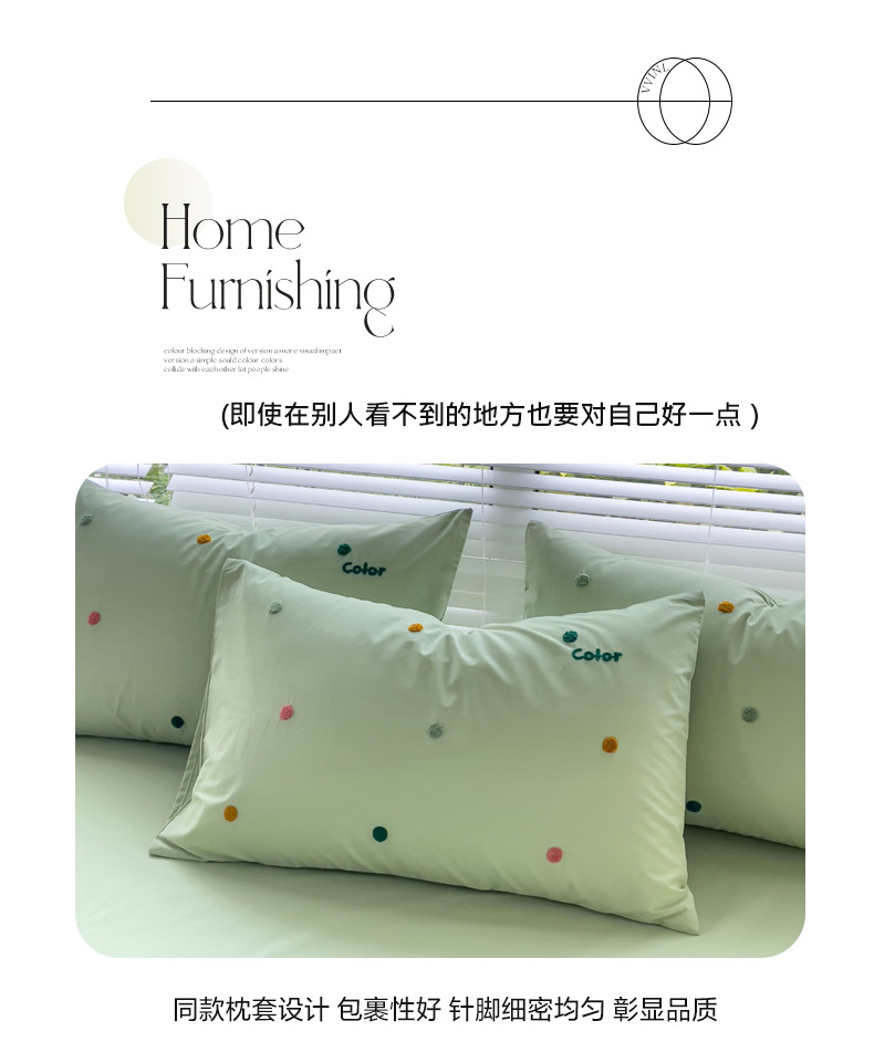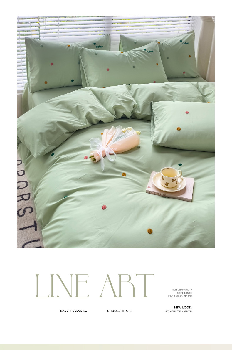 丽涵家纺 2024新款40S全棉水洗棉绣花四件套-夏天 夏天-纯茶绿