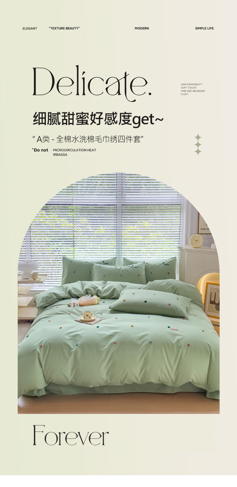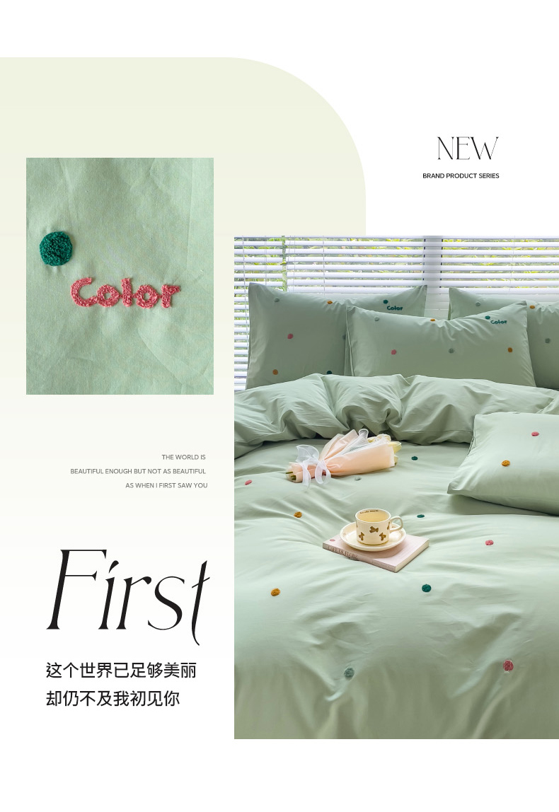 商品名称:丽涵家纺 2024新款40S全棉水洗棉绣花四件套-夏天 夏天-纯茶绿