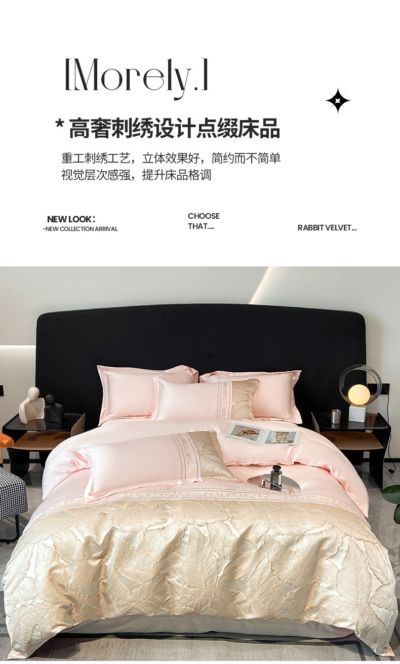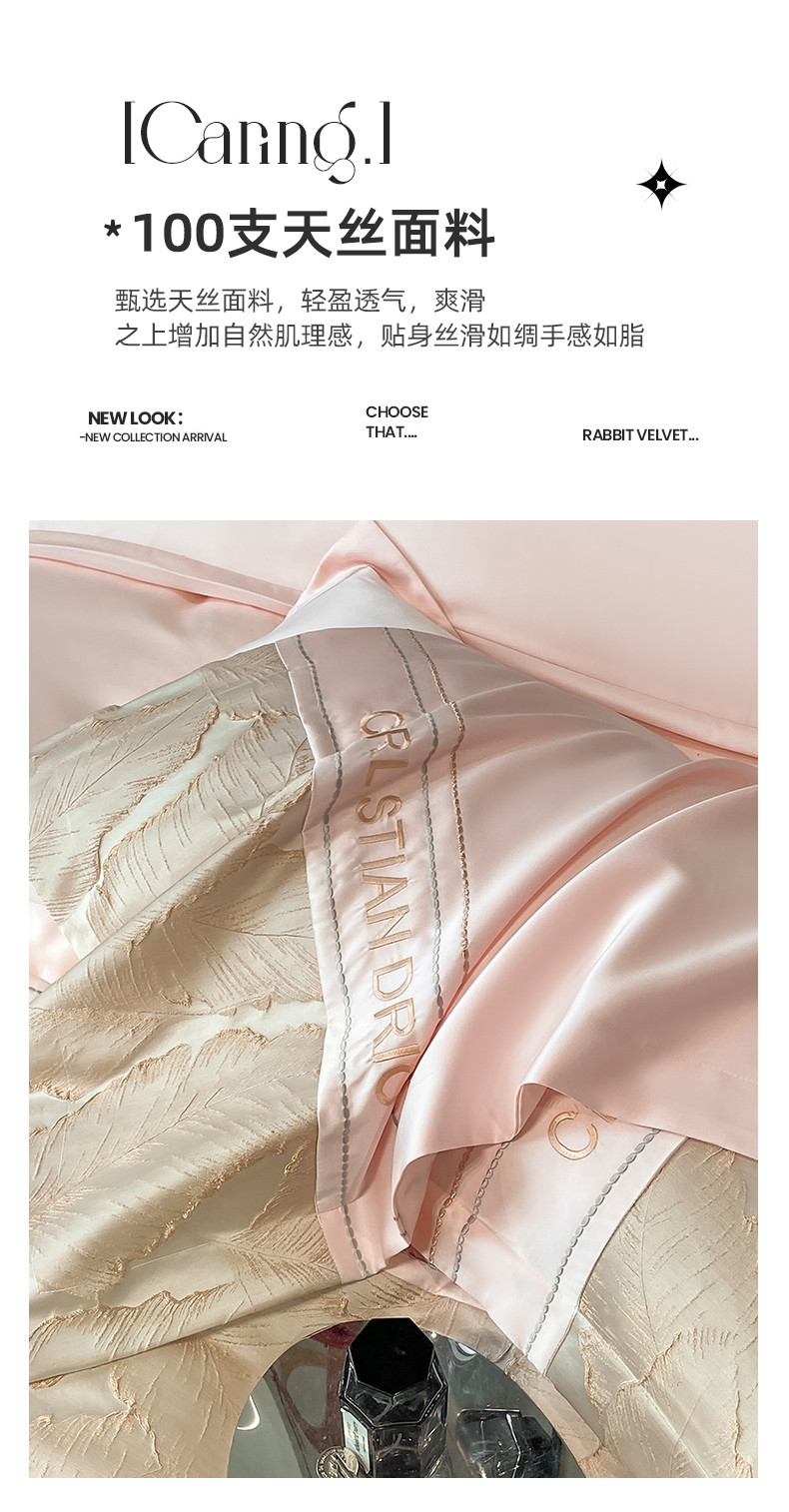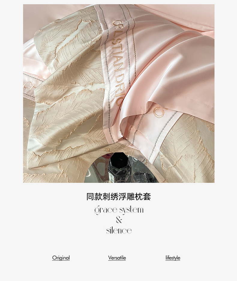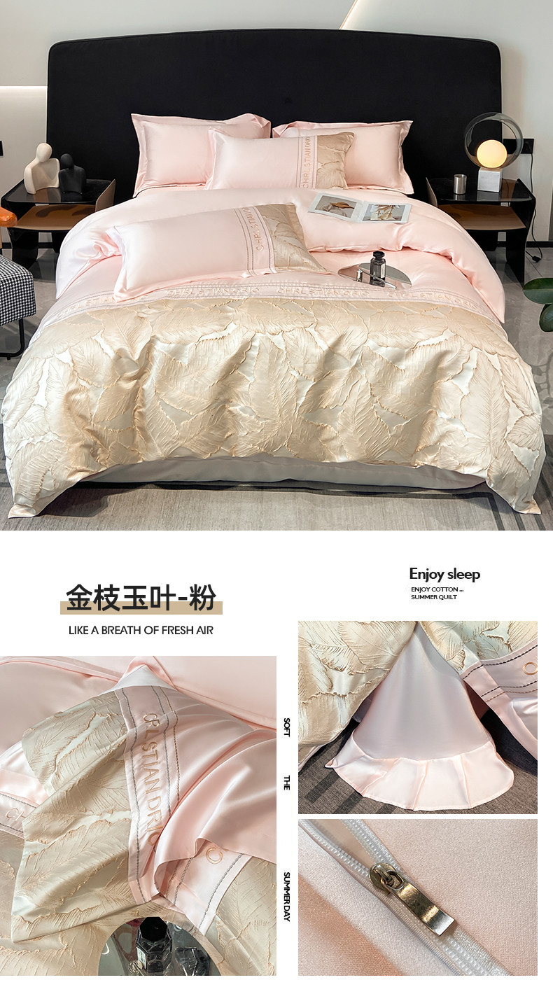 商品名称:梦舒羽2025新款莱赛尔天丝刺绣浮雕四件套 金枝玉叶-粉