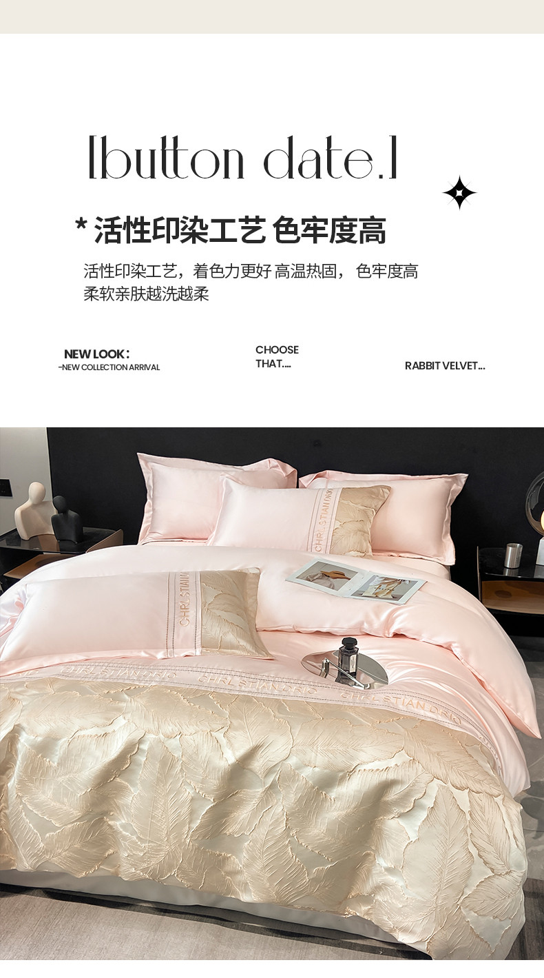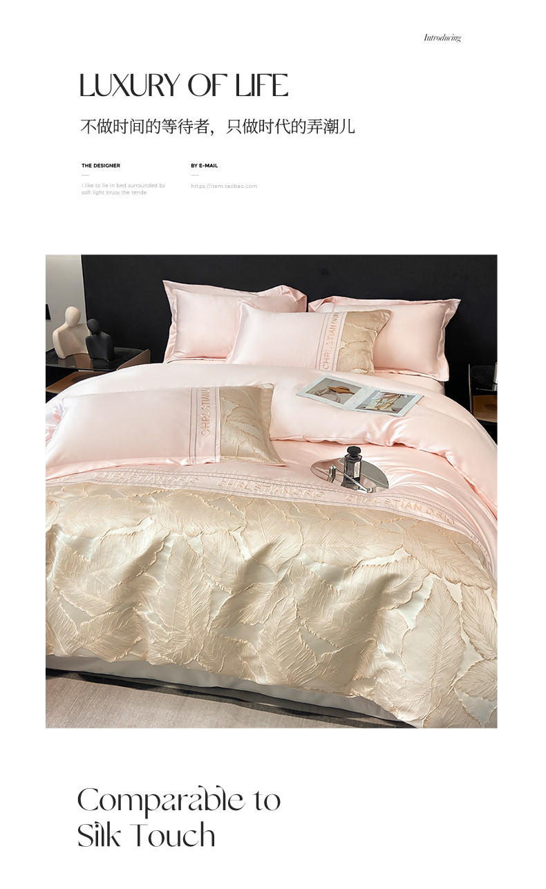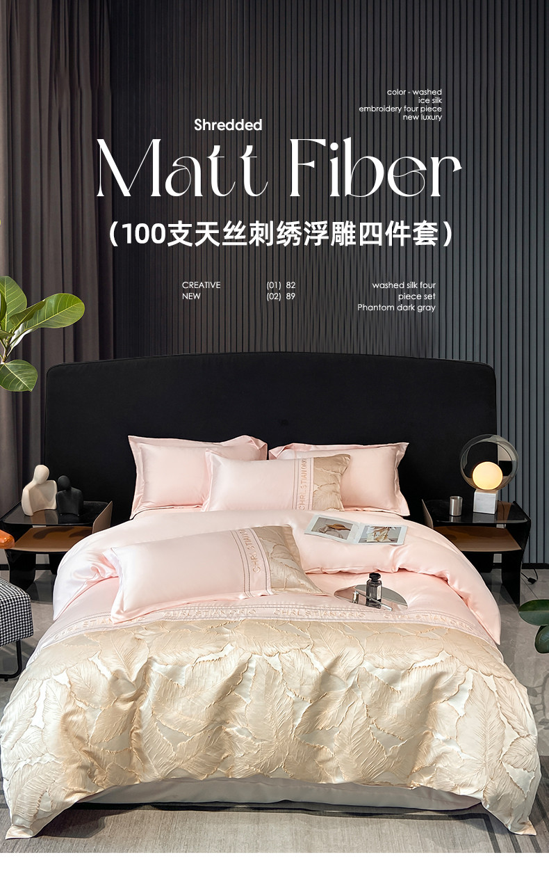 商品名称:梦舒羽2025新款莱赛尔天丝刺绣浮雕四件套 金枝玉叶-粉
