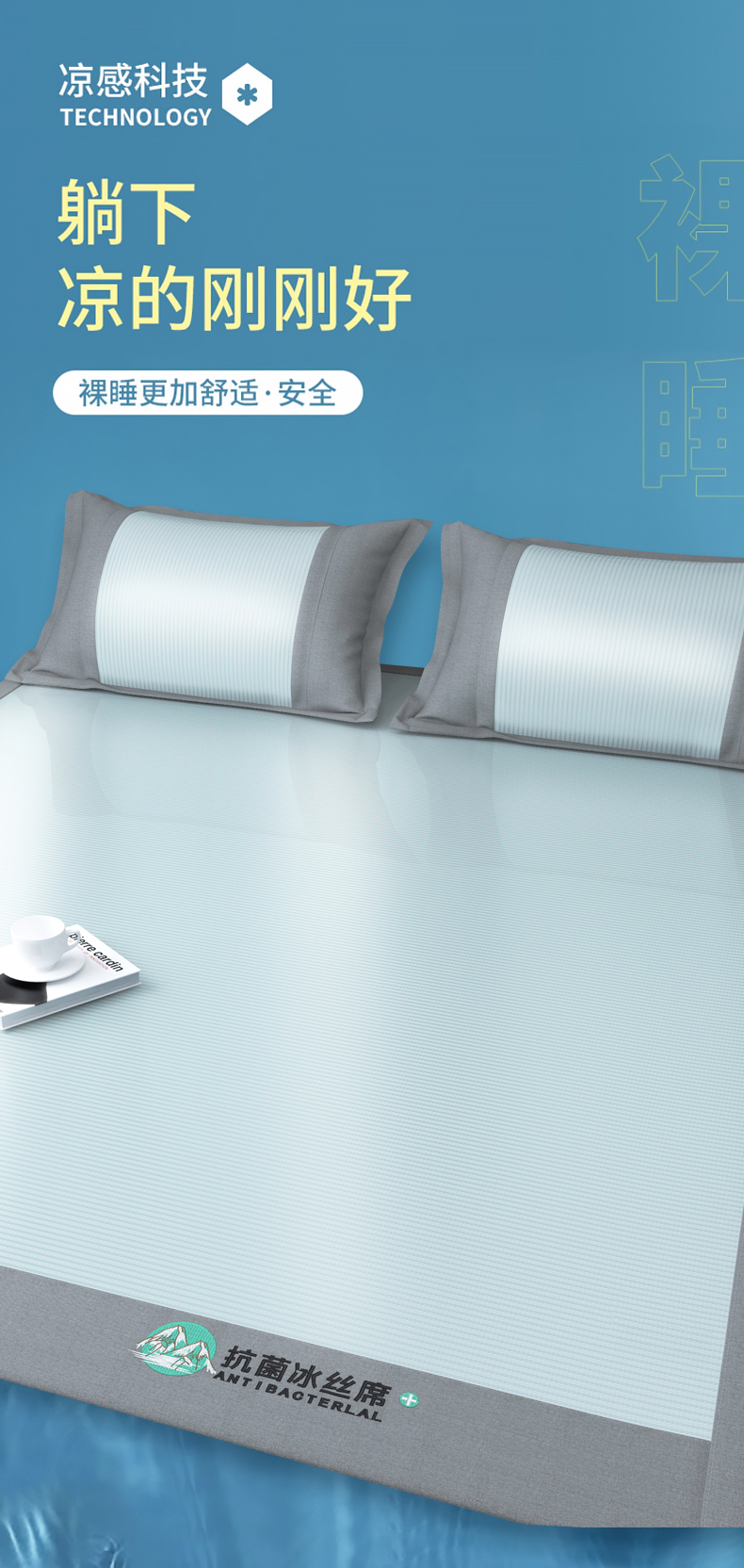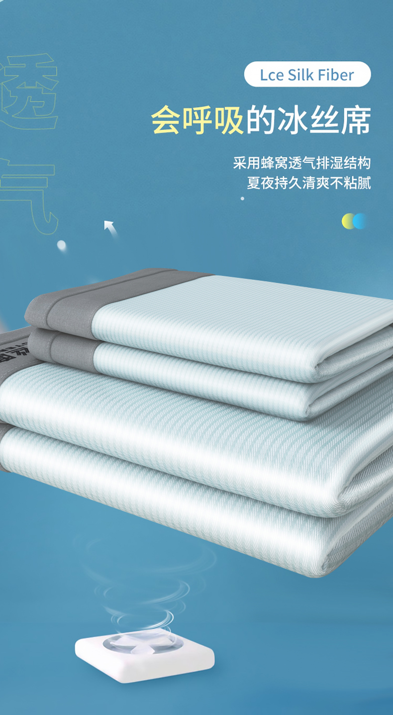 (总)伊被源 2024新款亲肤舒适品味生活凉感席,宝石蓝,肌理灰,梦境黄,清透绿,水晶绿