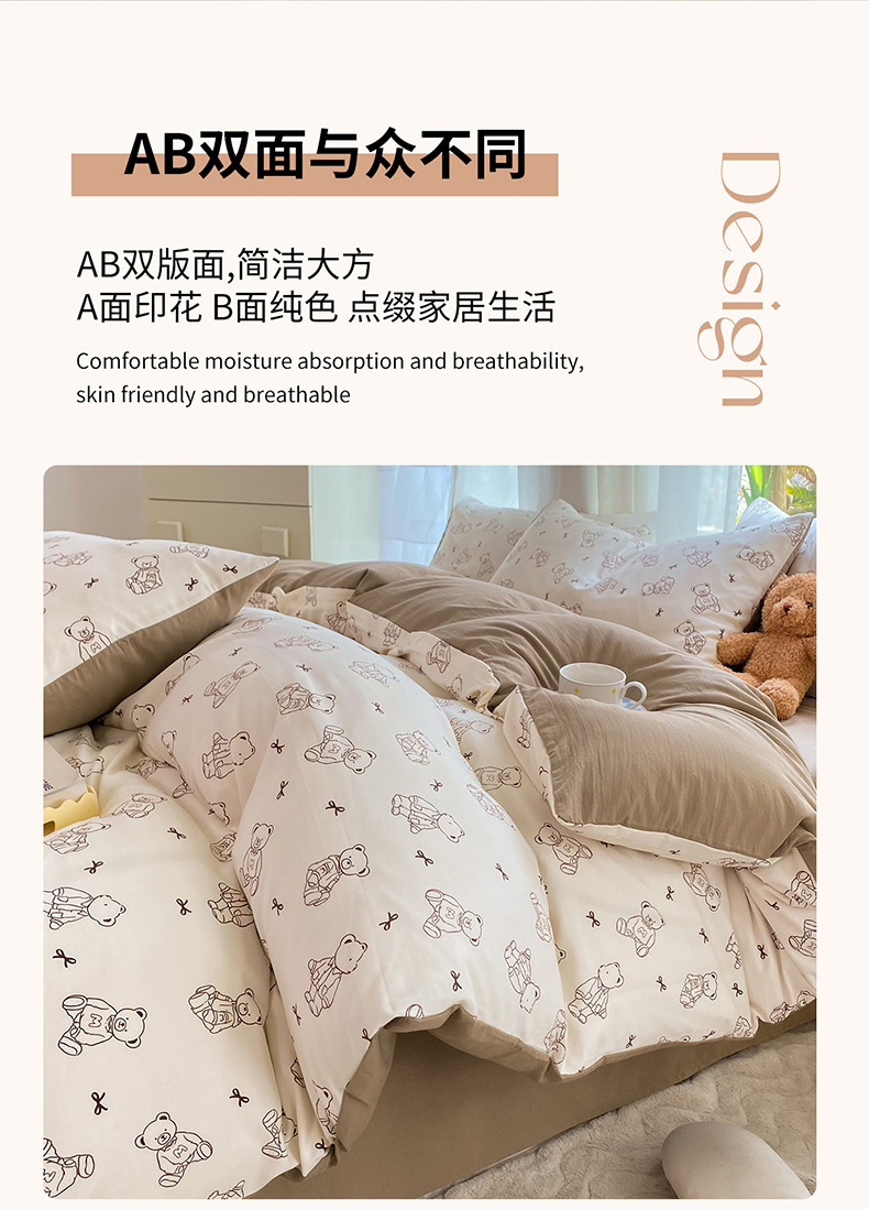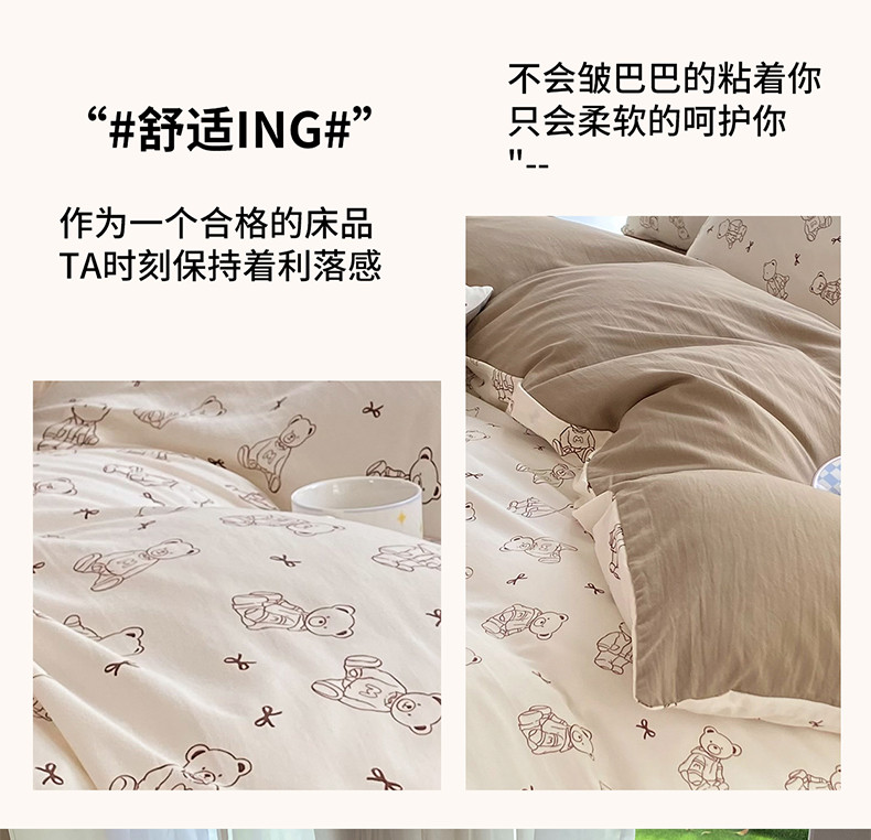 当前位置: 91家纺网 > 商品网购 > 床品套件 > 四件套 > 水洗棉四件套 > 妖妖家纺 2024新款超柔软糯水洗云朵棉印花四季款四件套 可爱棕熊