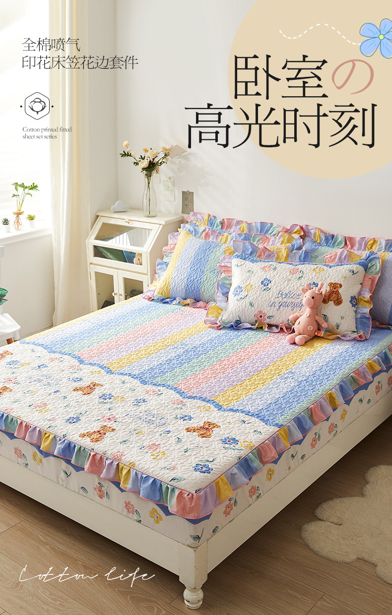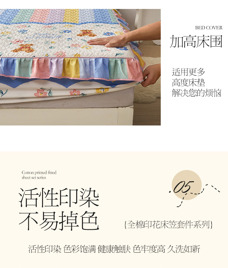(总)宜凡家纺 2025新款全棉数码印花床裙三件套系列一,静若幽兰,浮云织梦,梦幻花园,陌上花开