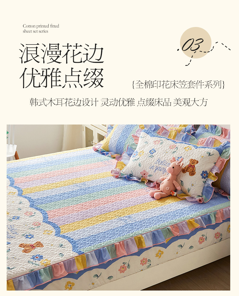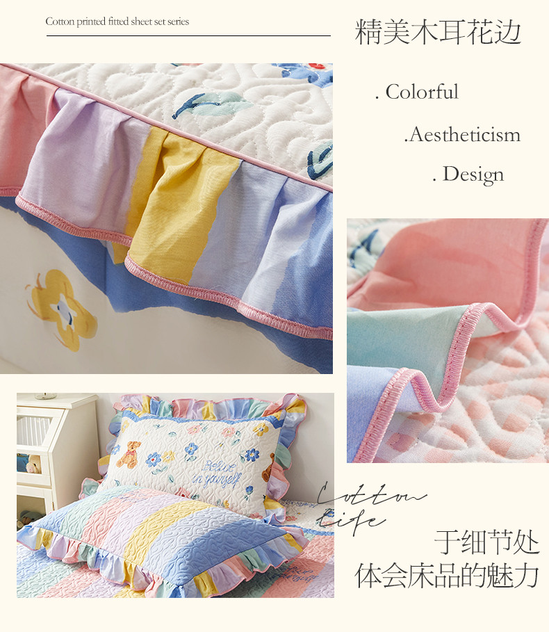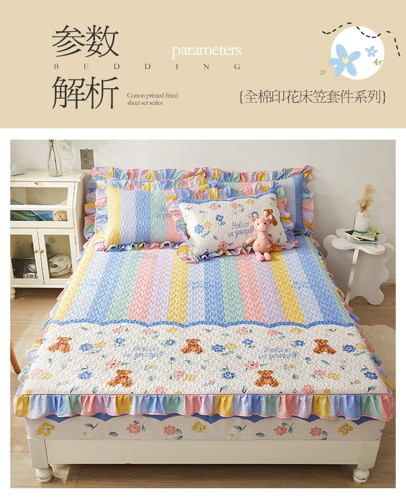 商品名称:宜凡 2023新款全棉印花床笠三件套 假日小熊