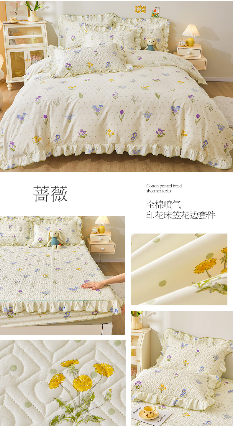 (总)宜凡家纺 2025新款全棉数码印花床裙三件套系列一,静若幽兰,浮云织梦,梦幻花园,陌上花开