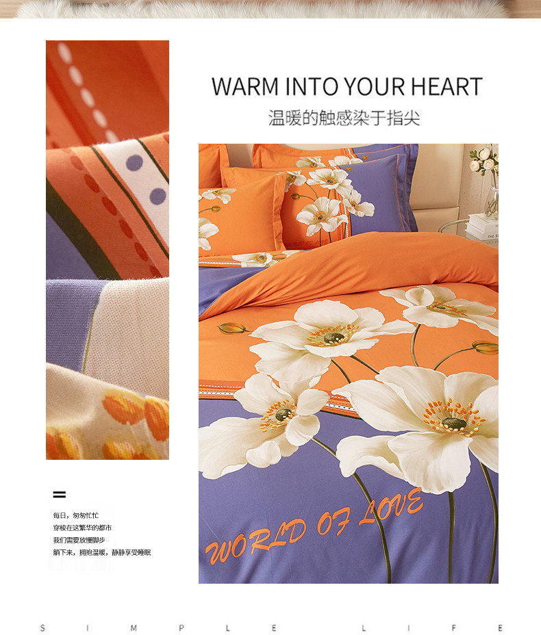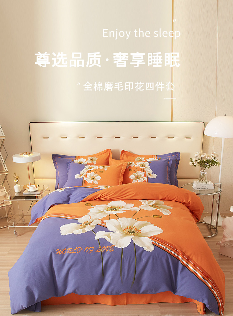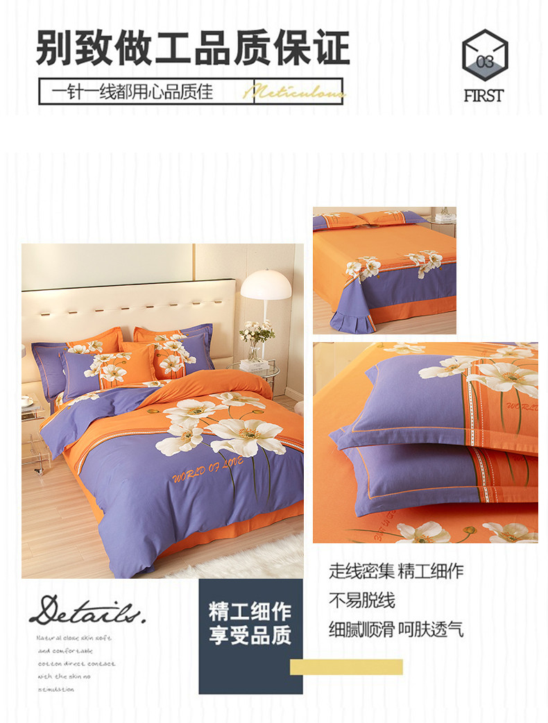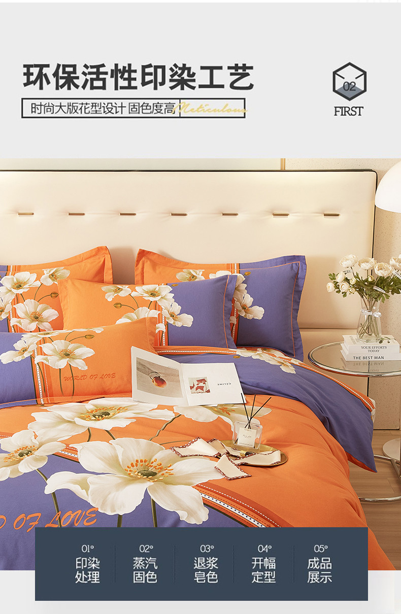 商品名称:金纱玉纺2023新款全棉生态大版磨毛四件套 那时花开-桔