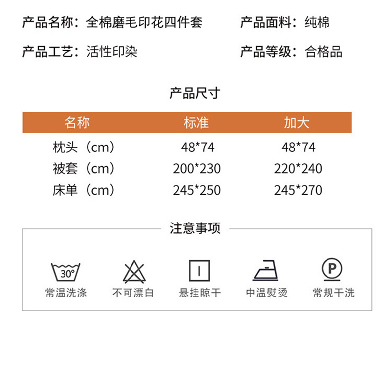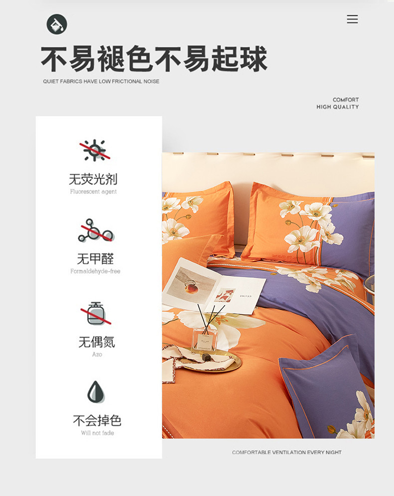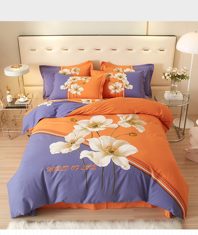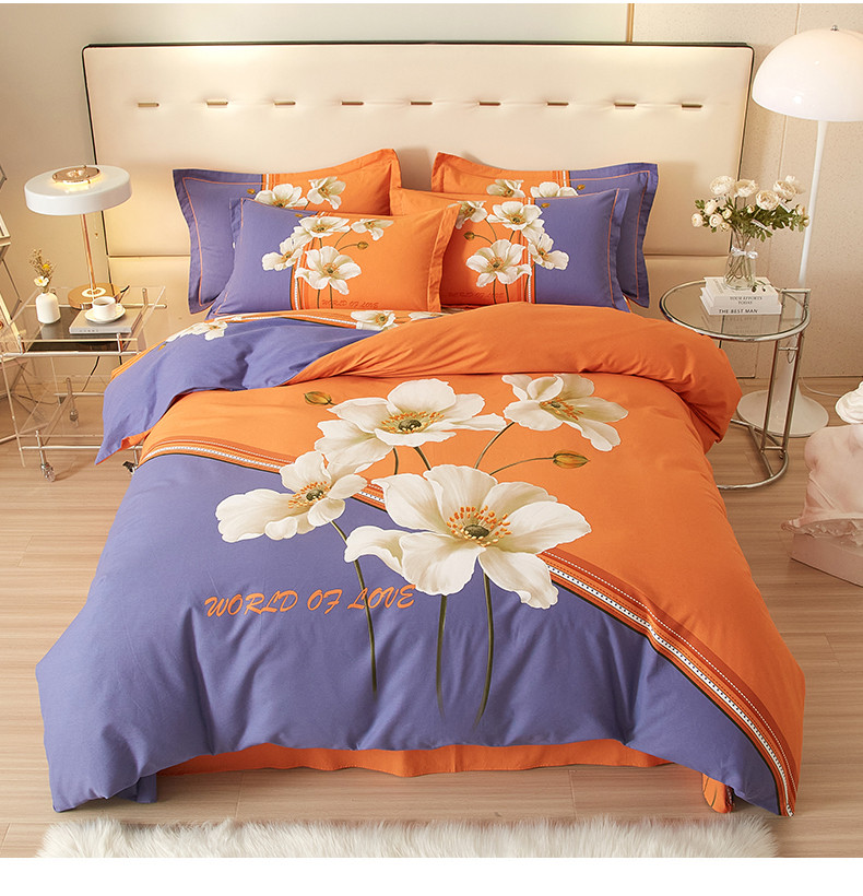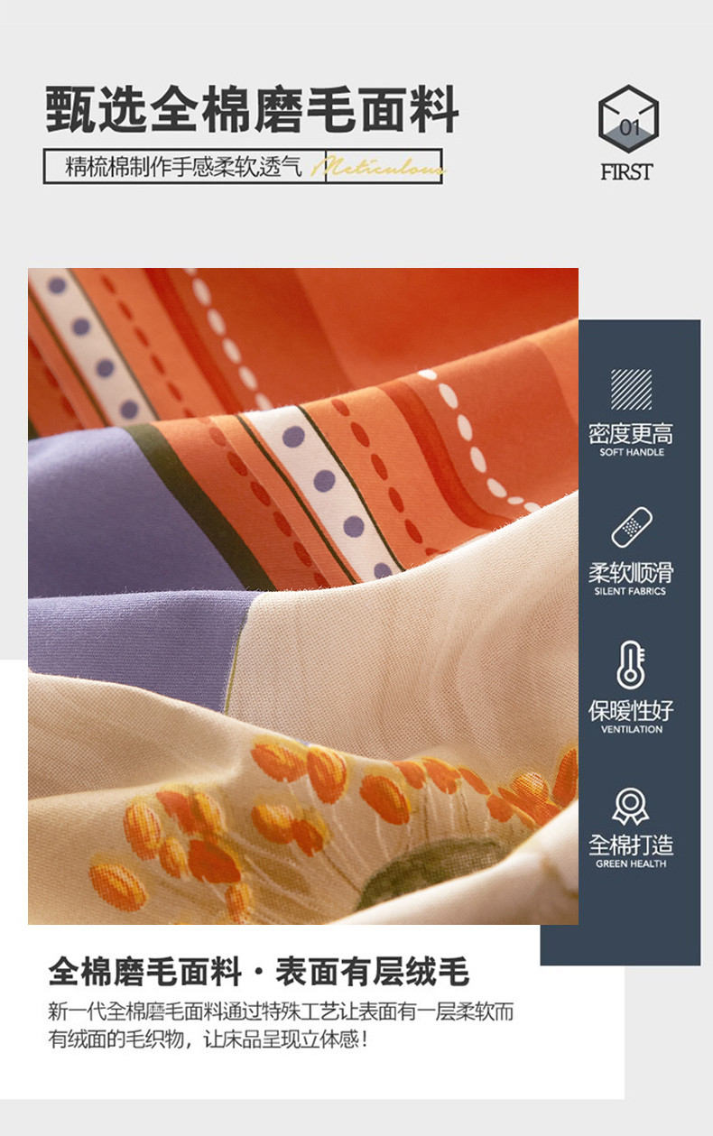商品名称:金纱玉纺2023新款全棉生态大版磨毛四件套 那时花开-桔