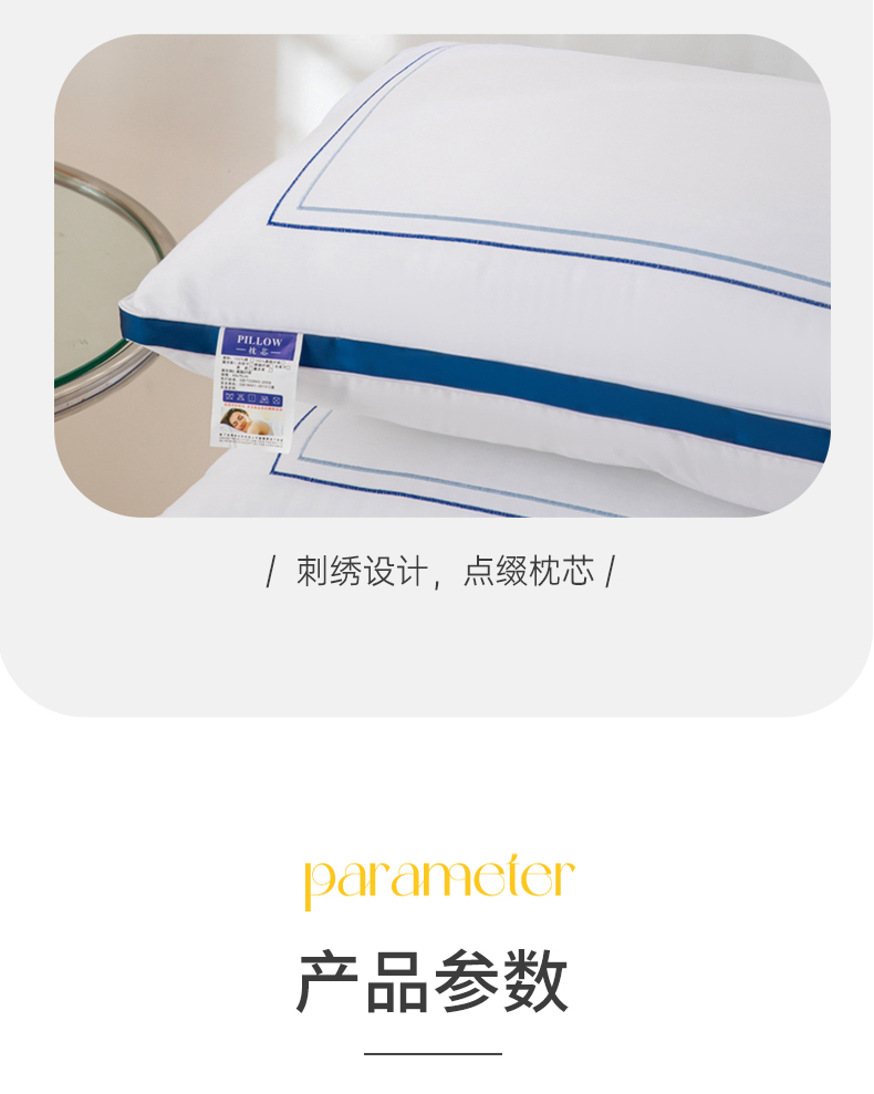当前位置: 91家纺网 > 商品网购 > 枕头/枕芯/保健枕/颈椎枕 > 普通枕芯 > 拾光 2023新款绣花全棉立体高端双边边框酒店枕芯全棉欧式纤丝金边低枕