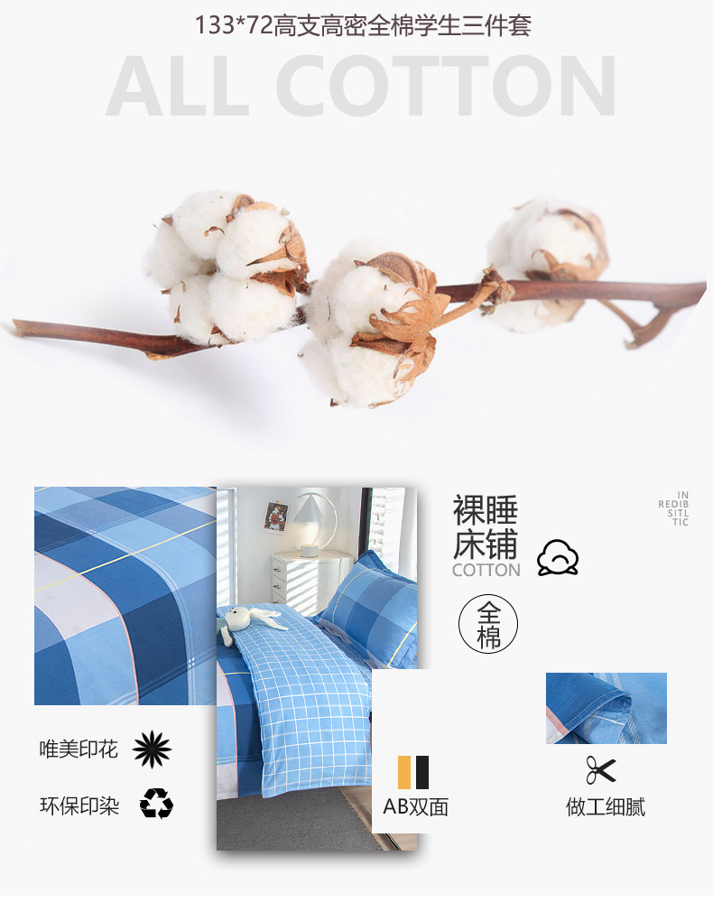 当前位置: 91家纺网 > 商品网购 > 床品套件 > 六件套 > 乐旗 2023新款13372全棉三件套 蓝调青春