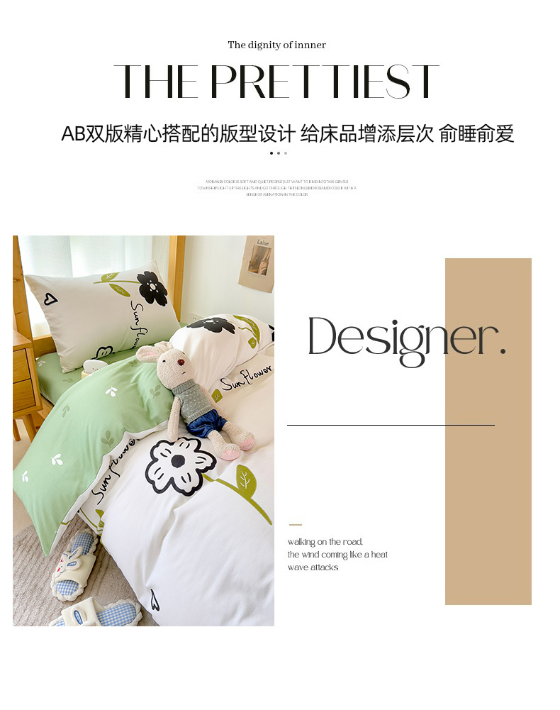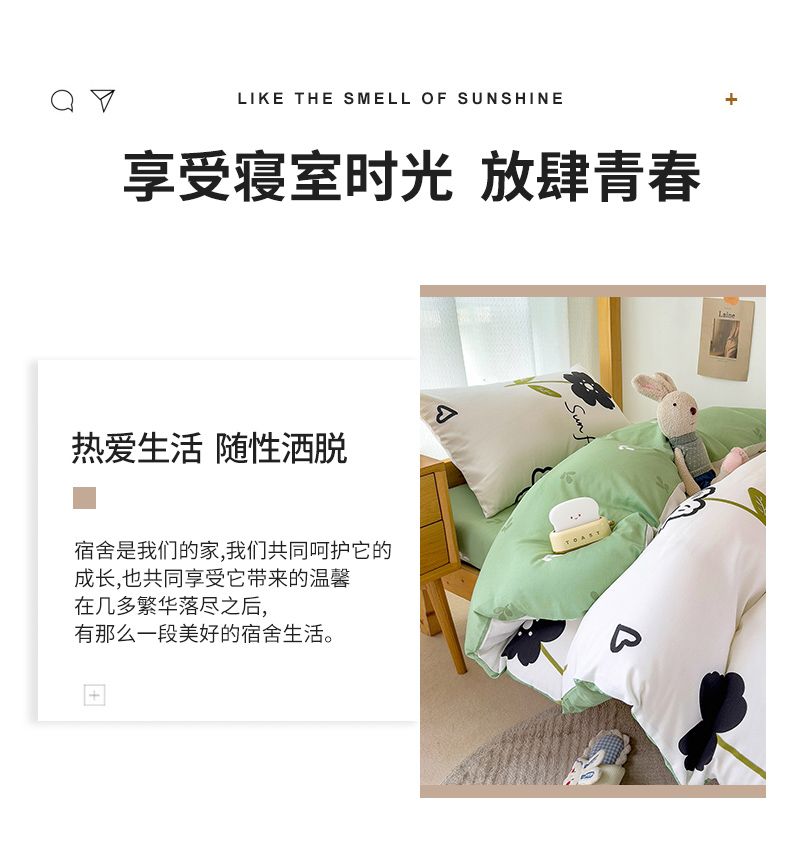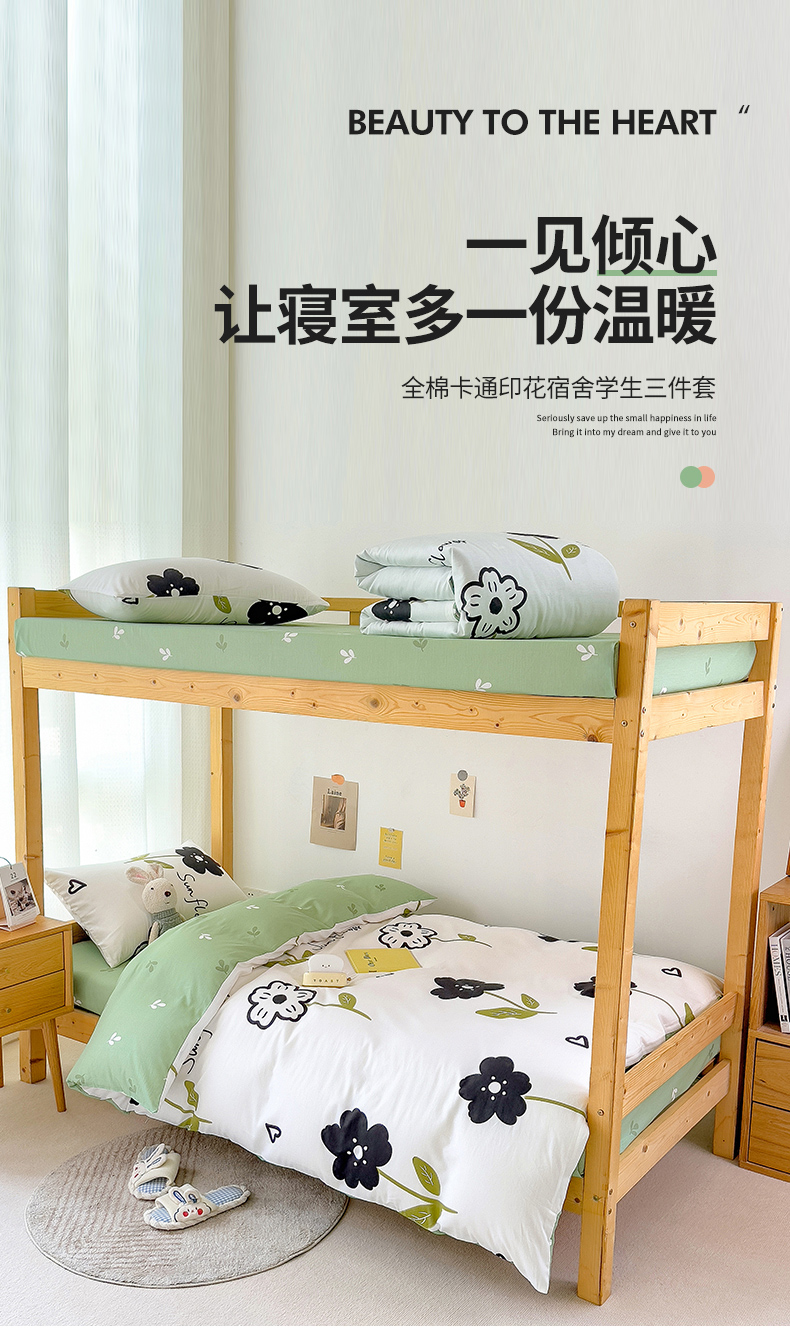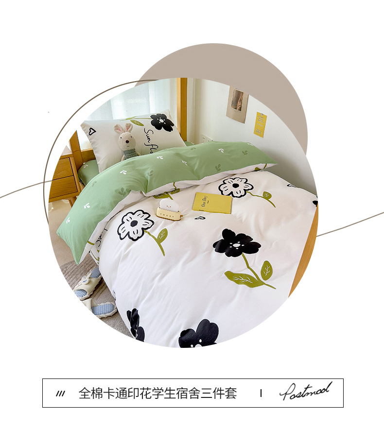 芃成家纺 2023新款全棉13070卡通印花学生三件套 花恋