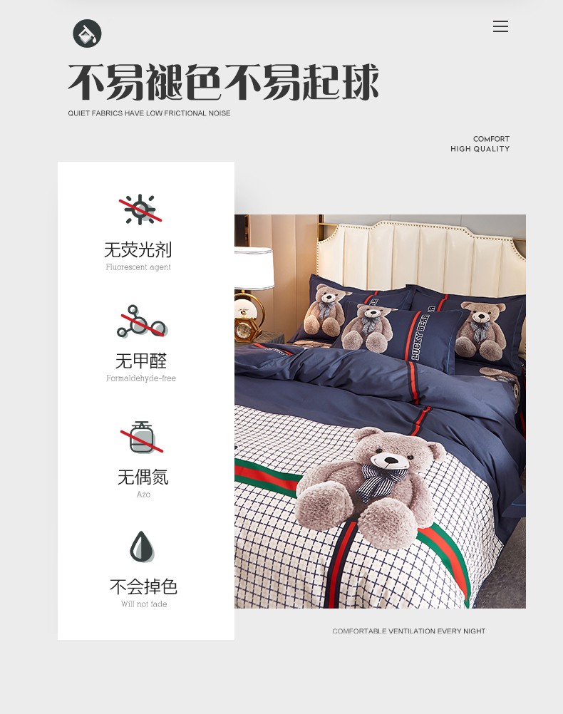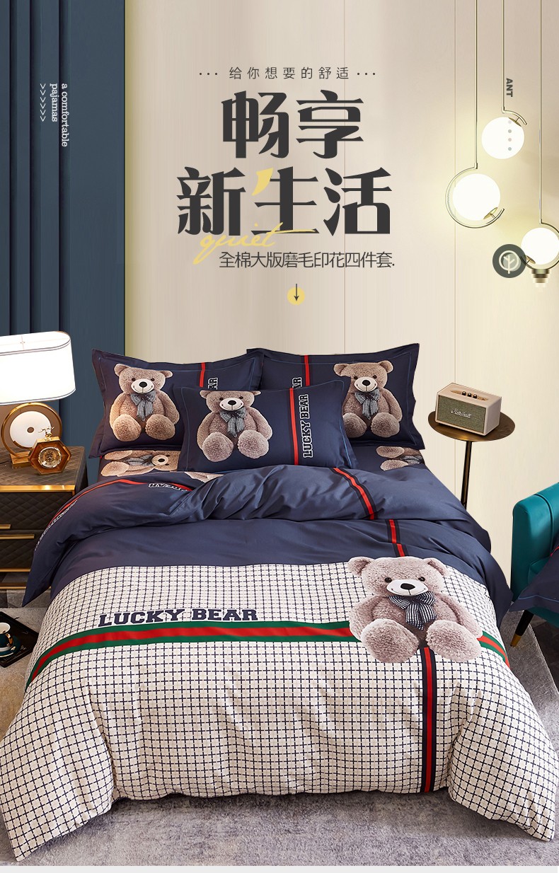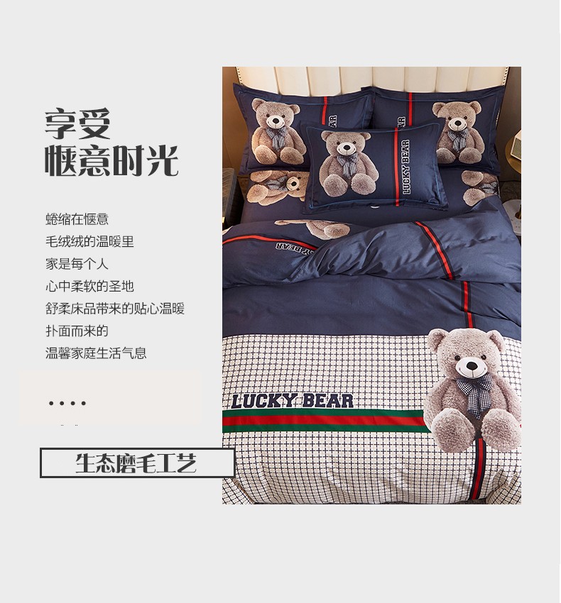 商品名称:雲归梦 2023年新款加厚全棉生态磨毛大版四件套 幸运熊