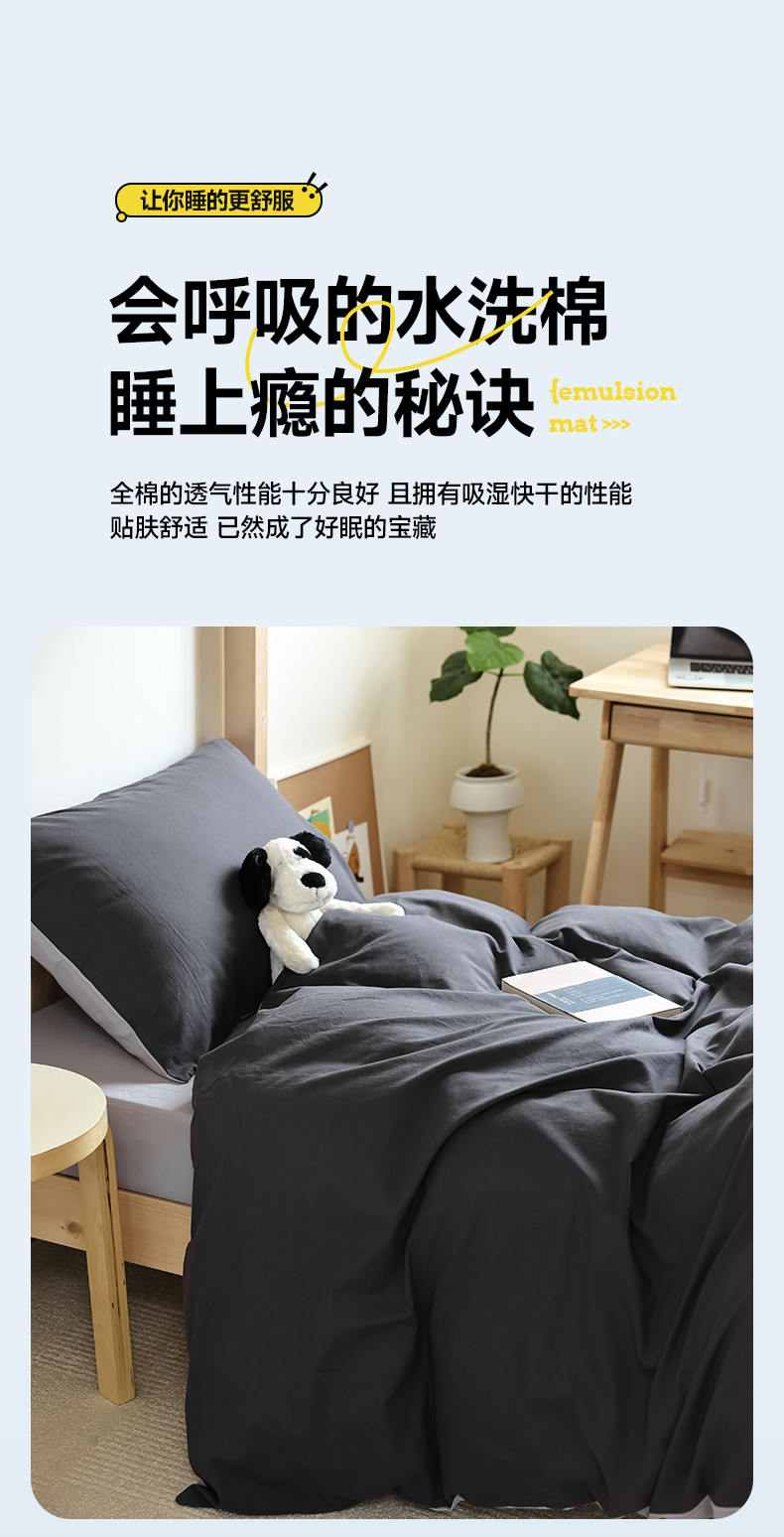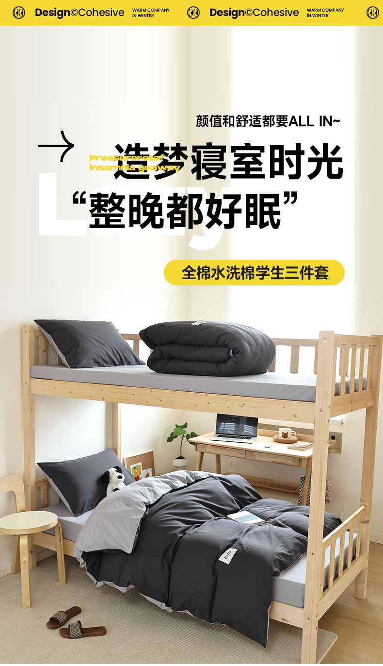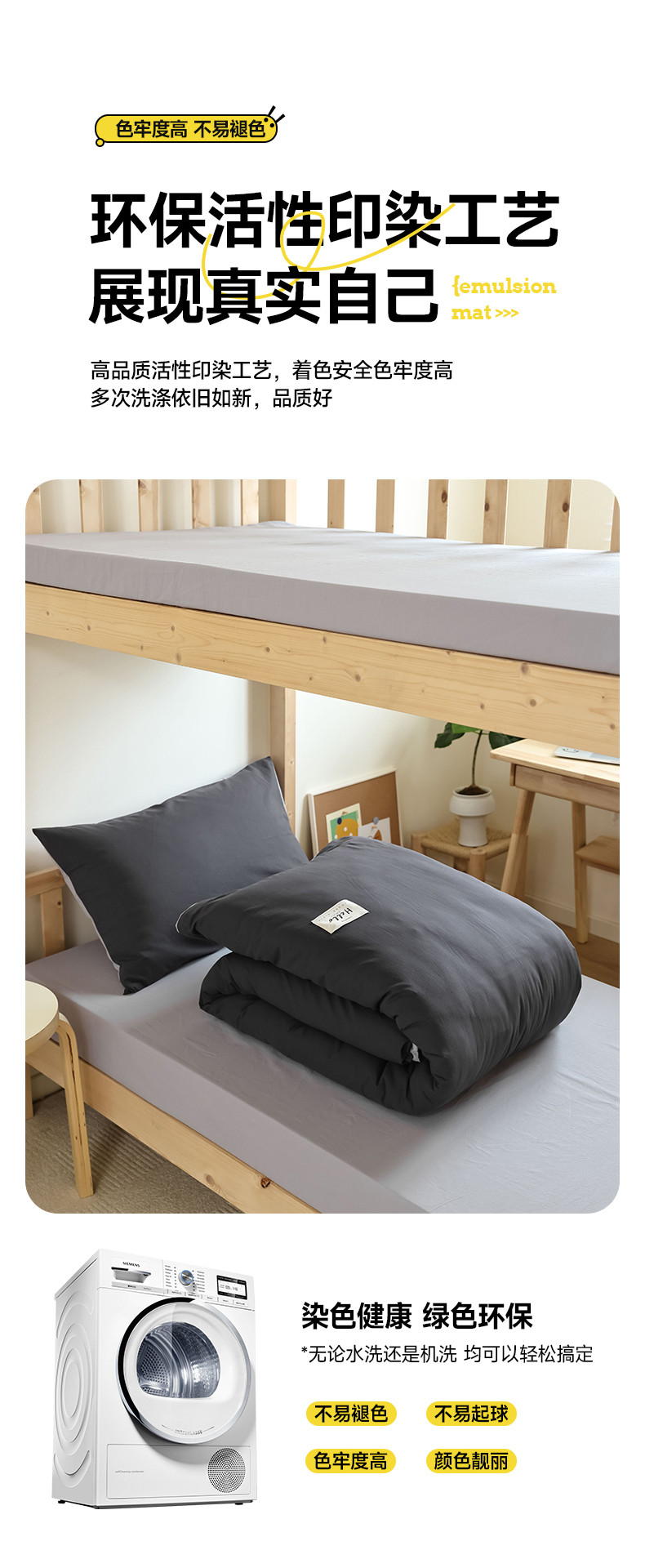 当前位置: 91家纺网 > 商品网购 > 床品套件 > 多件套 > 多件套 > 寐眠 2023新款全棉AB版水洗棉学生三件套 深灰+浅灰